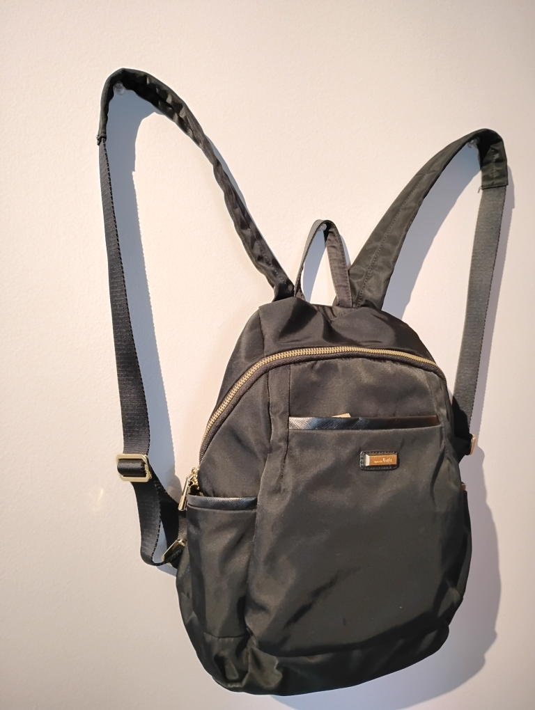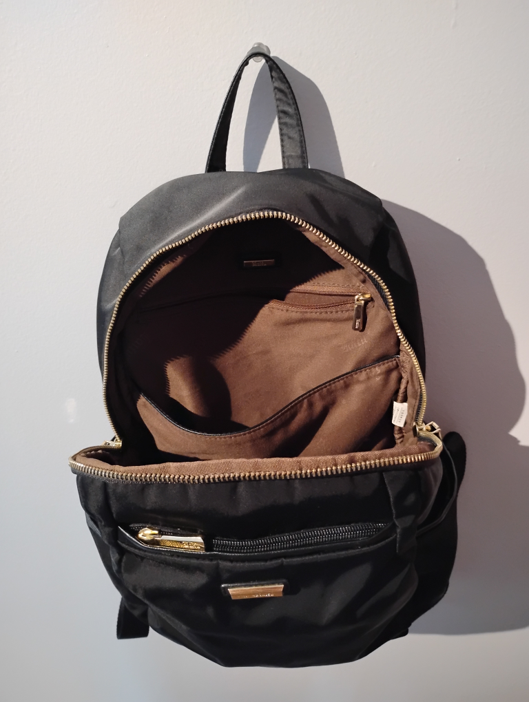 Rarely used, like new, great backpack. Just needs a new good home! -Water resistant material, good metal zippers. -Front zipper pocket is a single compartment -Two side pockets, -Dual Zipper for main. -Inside Main: two zipped up compartments, non-zip compartments and the main.