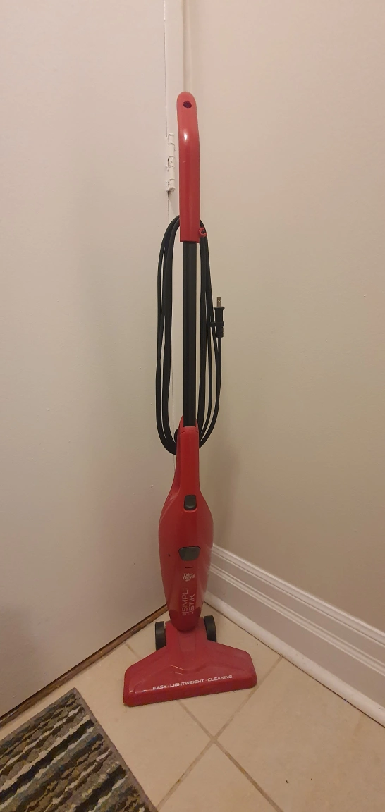 Free red Dirt Devil Simpli Stik vacuum cleaner. It's lightweight and easy to use for quick cleanups around the house. The stick comes off so you can use it as a handheld. Super great for dorm rooms. I believe it is fully cleaned but I will clean it off internally, wash the filters and everything if you want just let me know before pick up :) I can also drop it off if its nearby and I am not too swamped w work