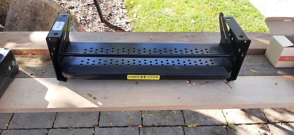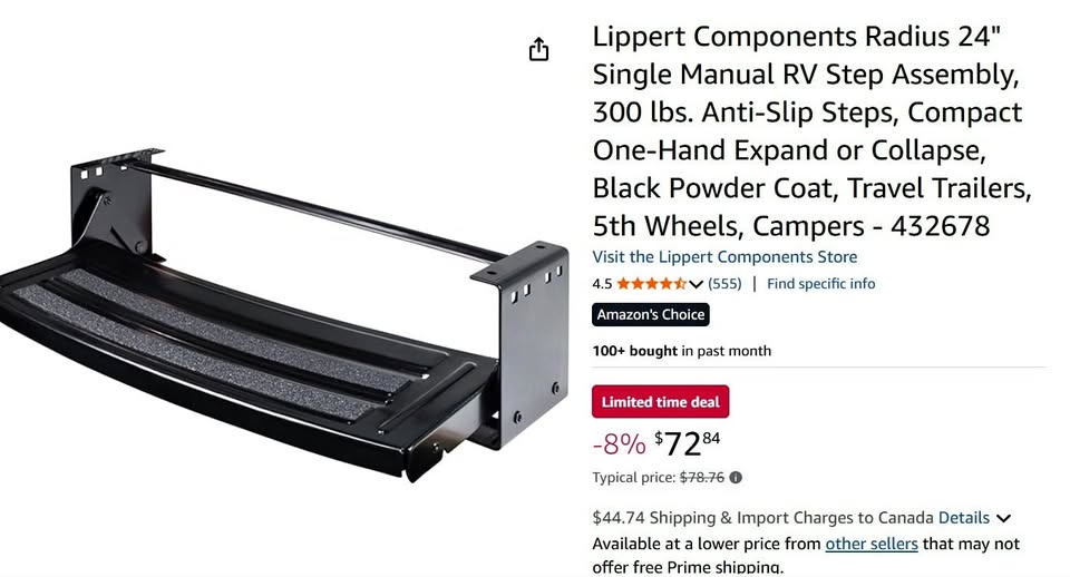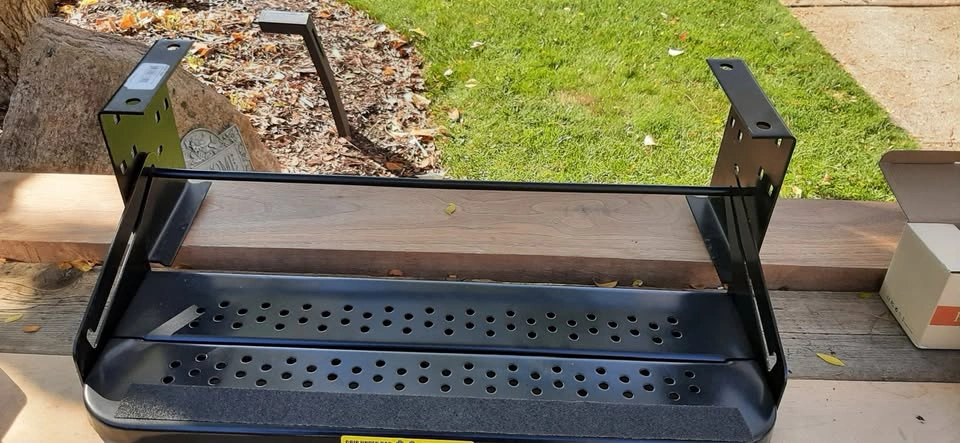 NEW - Radius 24" Single Manual RV Step Assembly, 300 lbs. Anti-Slip Steps, Compact One-Hand Expand or Collapse, Black Powder Coat, Travel Trailers, 5th Wheels, Campers - 432678