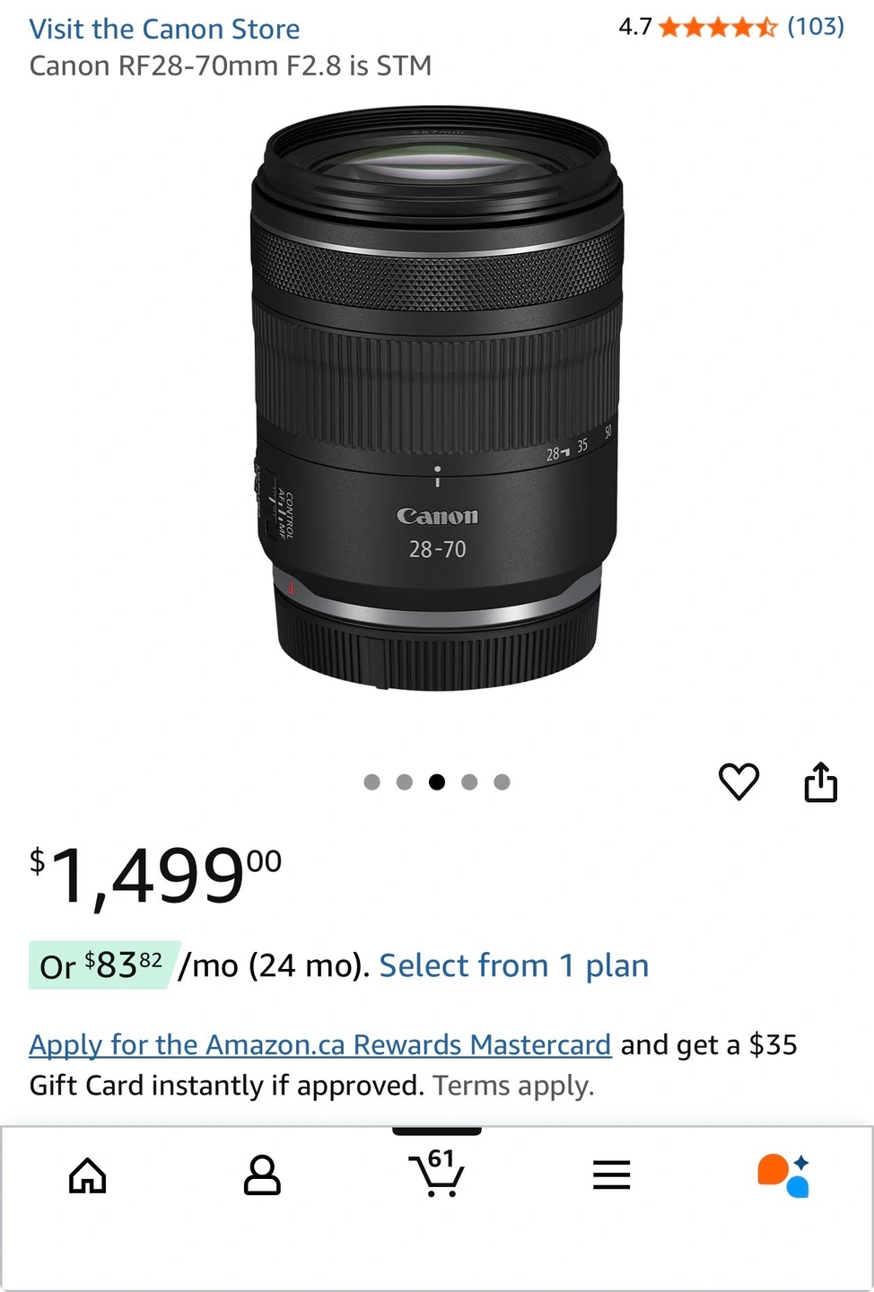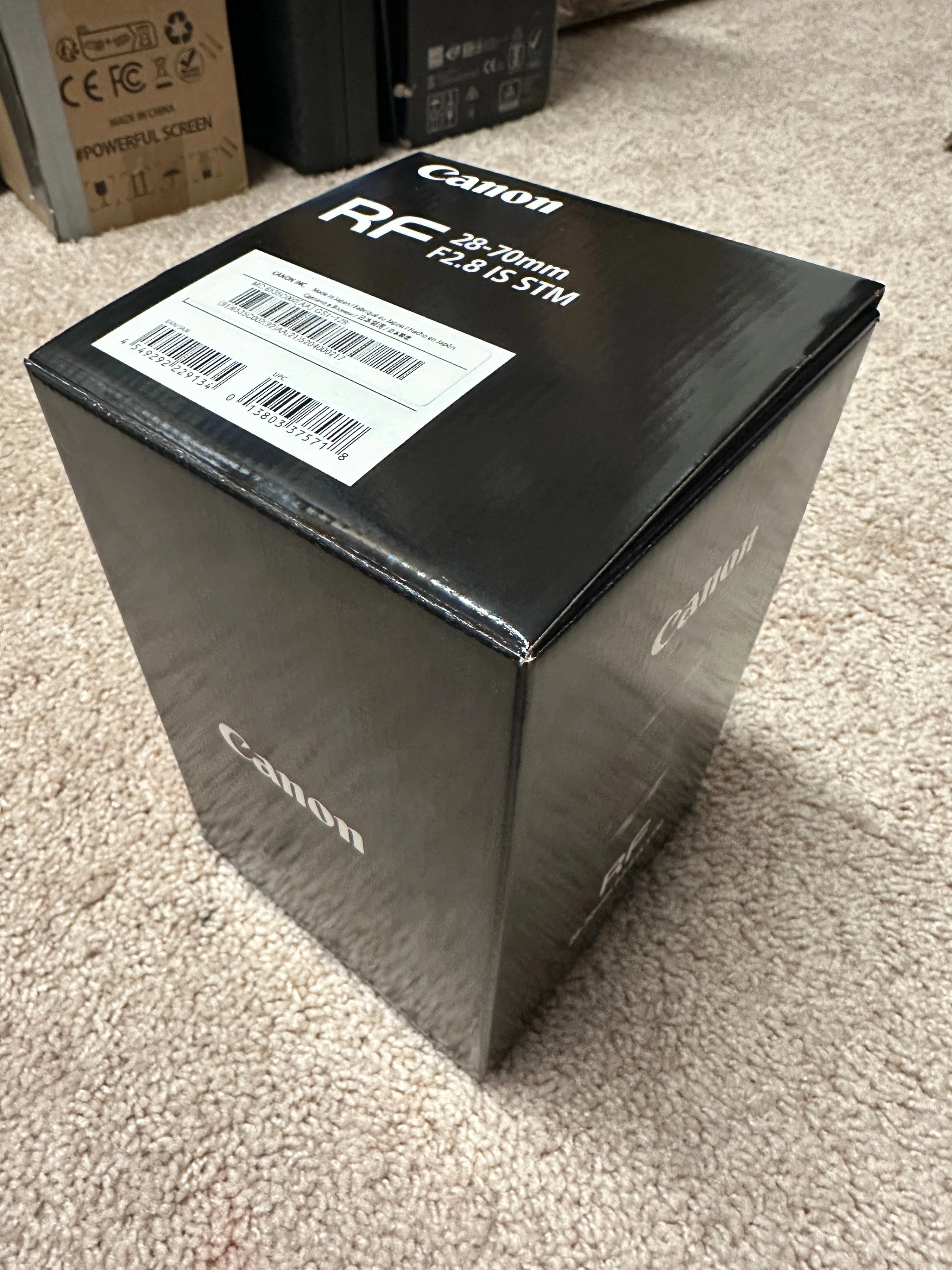 306Canon RF28-70mm F2.8 is STM NOTE: New in box Convenient mid-range zoom with a fixed f/2.8 aperture through entire zoom range. Light & compact everyday carry lens Newly designed Image Stabilization unit allows for lighter and smaller lens build. Incredible quality from edge-to-edge due to 2 UD elements to minimize chromatic aberration, and 2 aspheric lenses. Impressive durability and weather-resistant construction equivalent to an L-series lens for use in harsh environments.