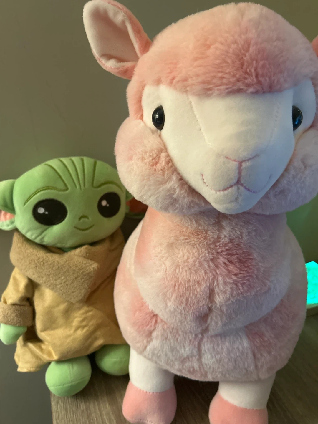 10Selling these two cute plushies! There's a pink llama and a Baby Yoda. They're both in great shape and looking for a new home Moving out sale!! 10 each