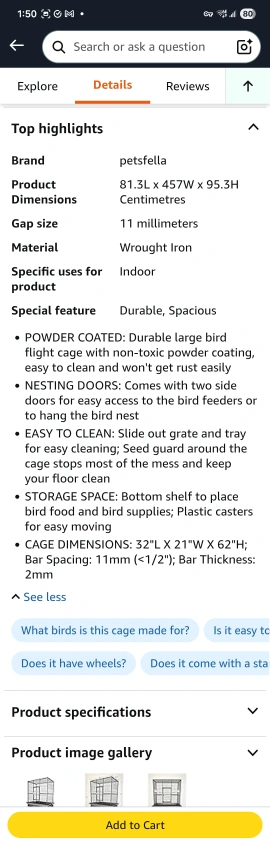 PRODUCT AND CAGE DIMENSIONS AS PER IMAGES SHARED IN THIS AD
