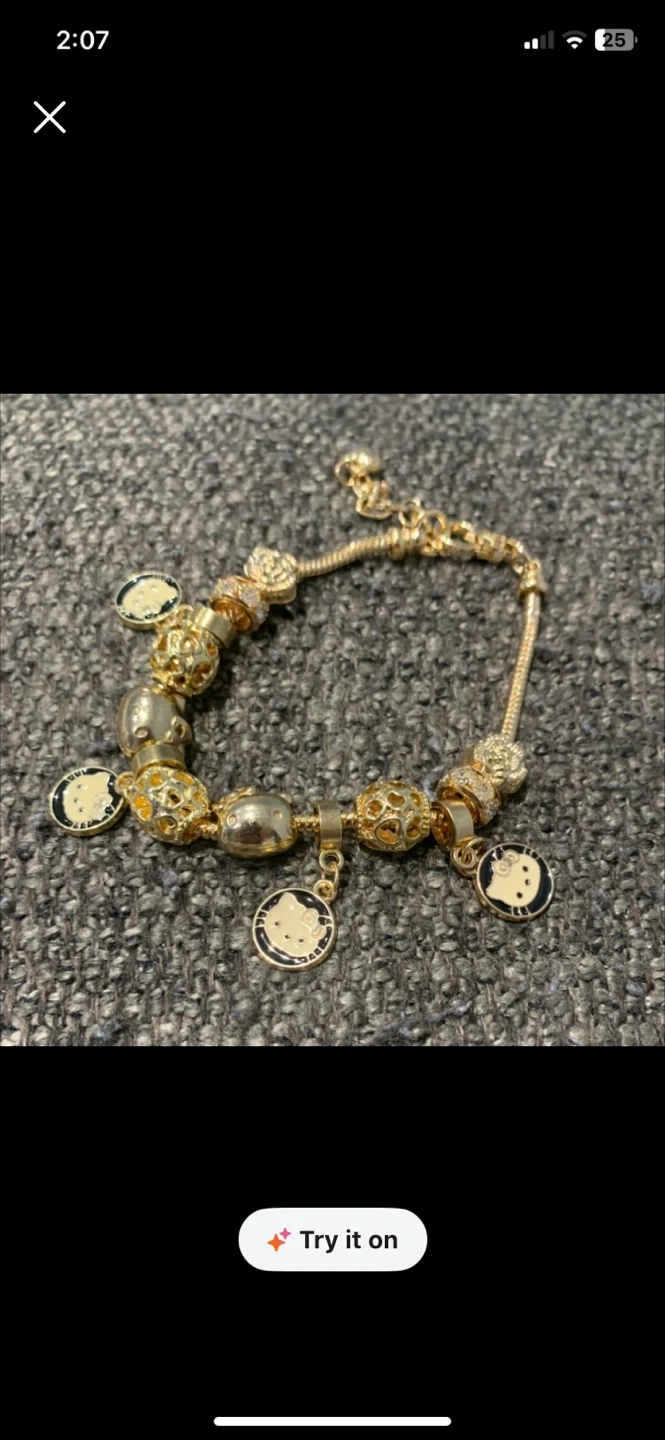 Selling a cute gold charm bracelet featuring Hello Kitty charms! It's in great condition and would be a lovely addition to any collection