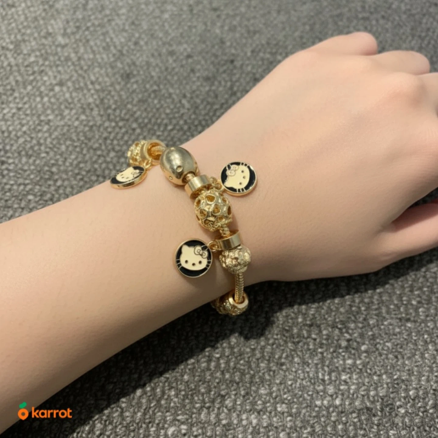 Hello Kitty Gold Tone Plated Charm Bracelet