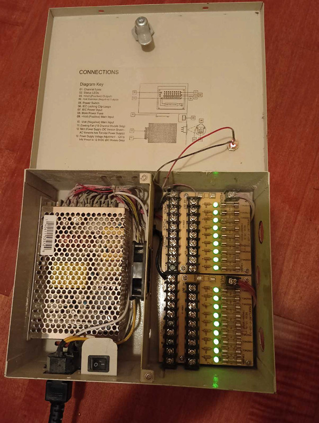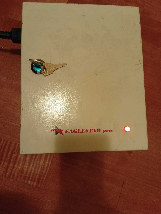 This EAGLESTAR pro security panel is in used condition and is equipped with a power supply and terminal blocks, ready for use. It's ideal for setting up or expanding a security system. The panel is fully functional, offering a reliable solution for security needs.