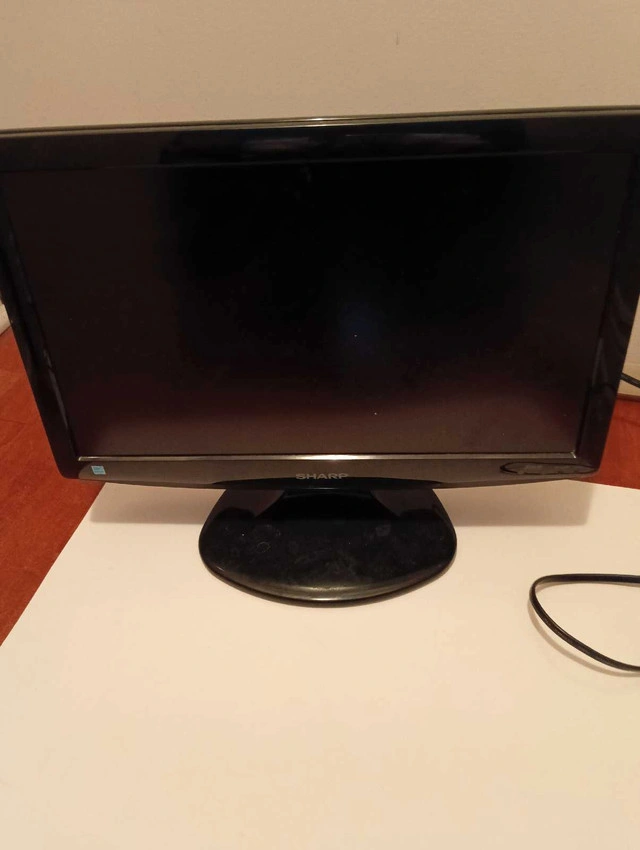 This is a used Sharp monitor that measures approximately 19 inches. It's perfect for basic computing needs. Here are some details: * Brand: Sharp * Screen Size: Approximately 19 inches * Condition: Used, but still works great! Looking at similar monitors, a reasonable price seems to be around $30. If the ad is up, it's available!