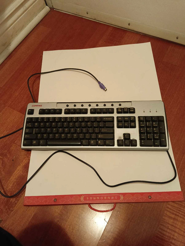 This is a Compaq keyboard, ideal for desktop computers requiring a reliable input device. It's in used condition, showing signs of wear but fully functional for everyday use. As with any pre-owned item, it has its quirks and history, but it's ready to type away. If the ad's up, it's up for grabs!