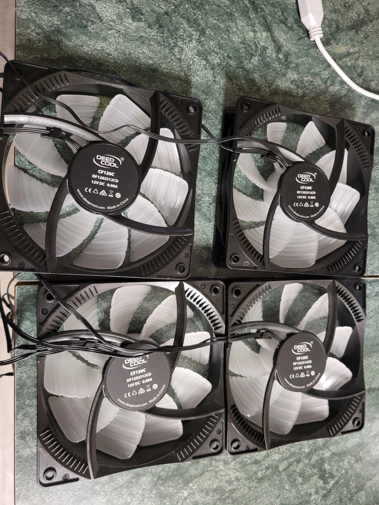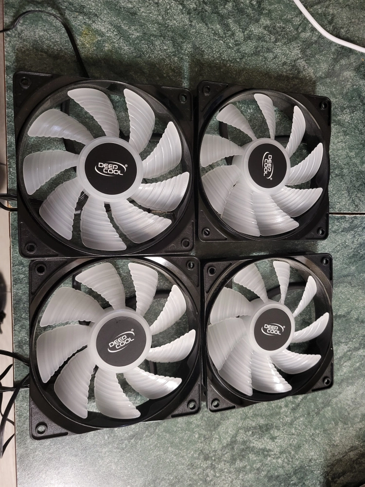 69Selling a set of four DEEPCOOL CF120 computer case fans. These fans are in great shape and ready to keep your system cool! They operate at 12V DC and 0.08A. Perfect for any PC build or upgrade