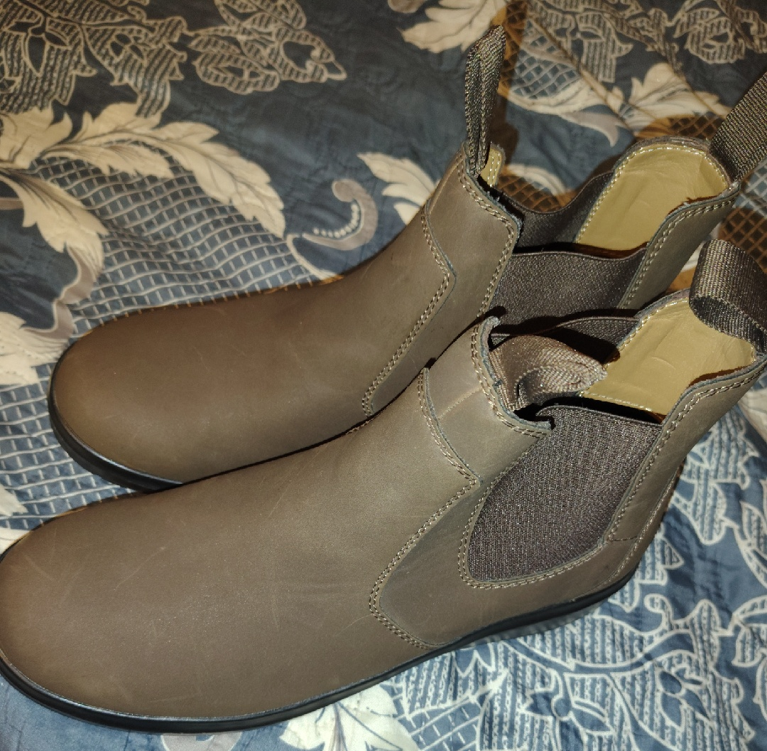 These are a size 12 pair of Terra Chelsea boots in brown leather. They are in New condition and ne feature a classic Chelsea boot design with elastic side panels and a pull tab for easy on and off. The soles are durable and provide good traction, making them suitable for various weather conditions. They are a stylish and practical choice for everyday wear