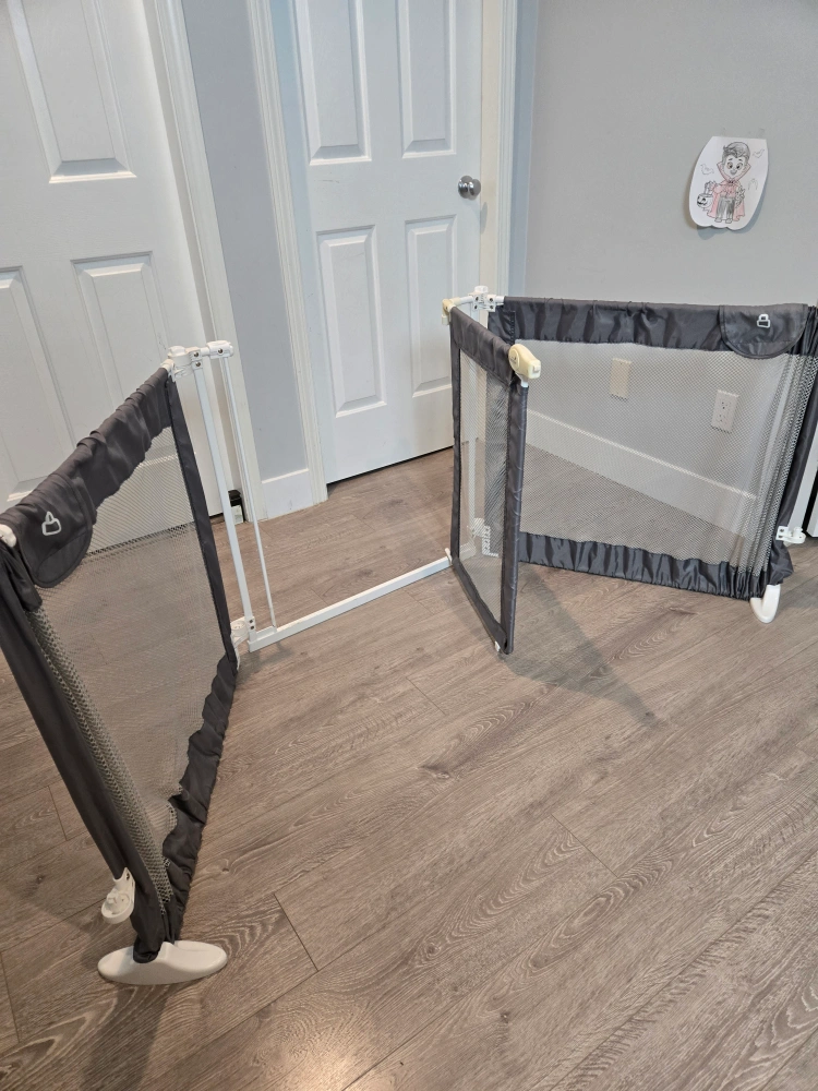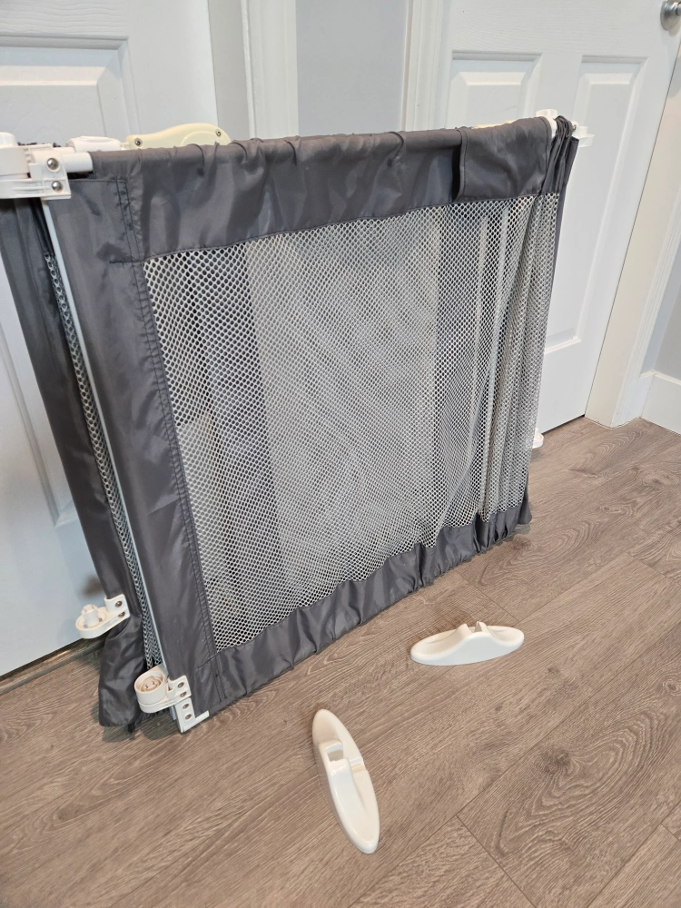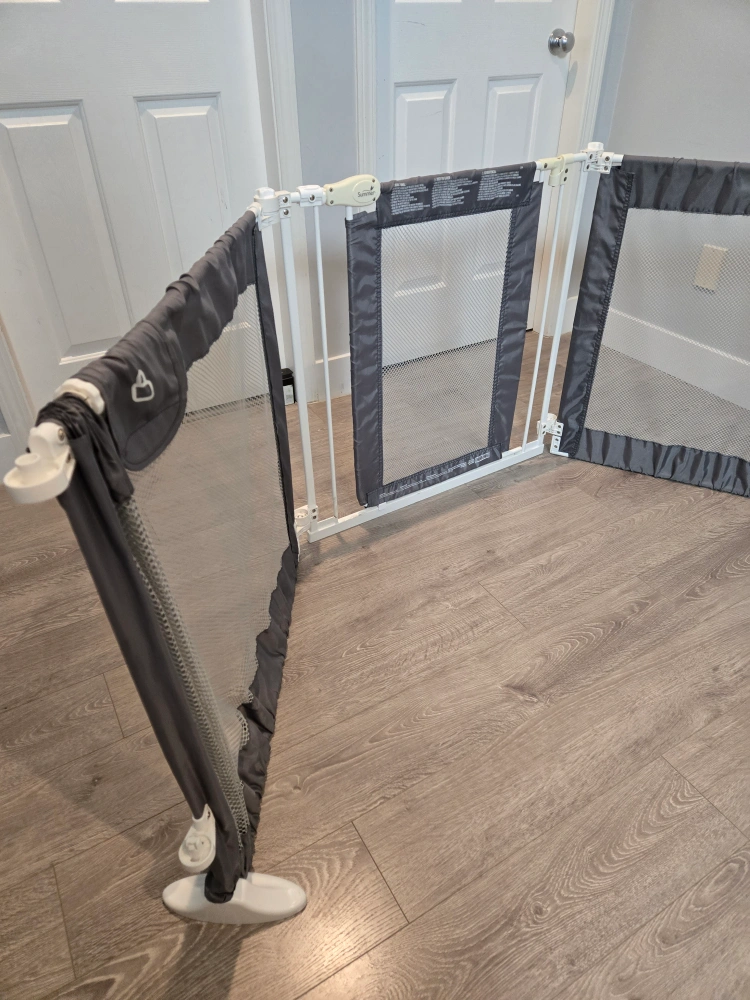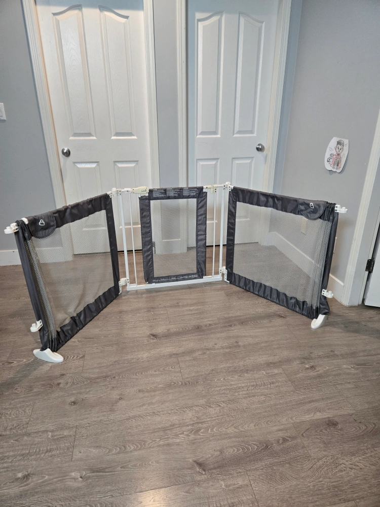 36Infant toddler custom fit baby gate mesh extendable. My baby has grown out of this baby gate. It has been stored in garage for a bit. I couldnt find the original ad or brand of this item but a similar one was found on Amazon. Please refer to photos . Price is firm Pick up near 22nd skytrain new west