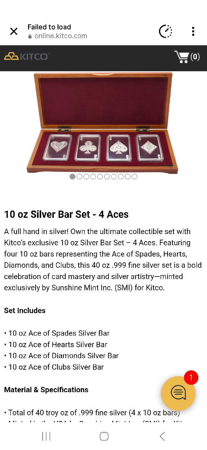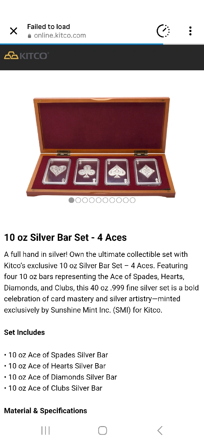Kitco 10 oz Silver Bar Set - 4 Aces for sale