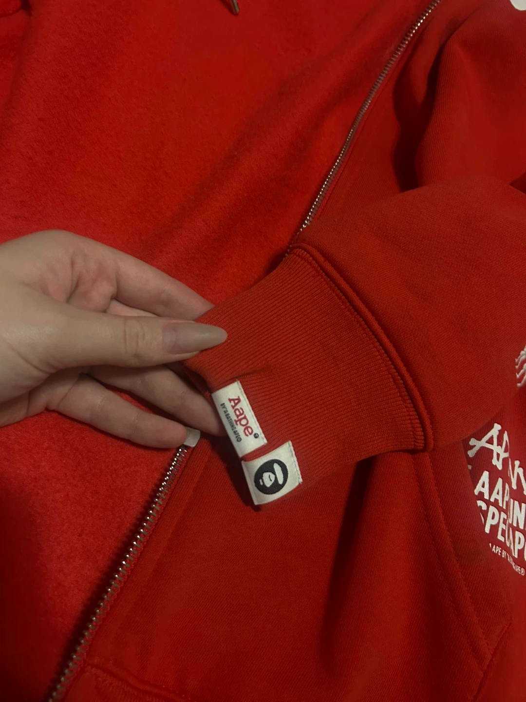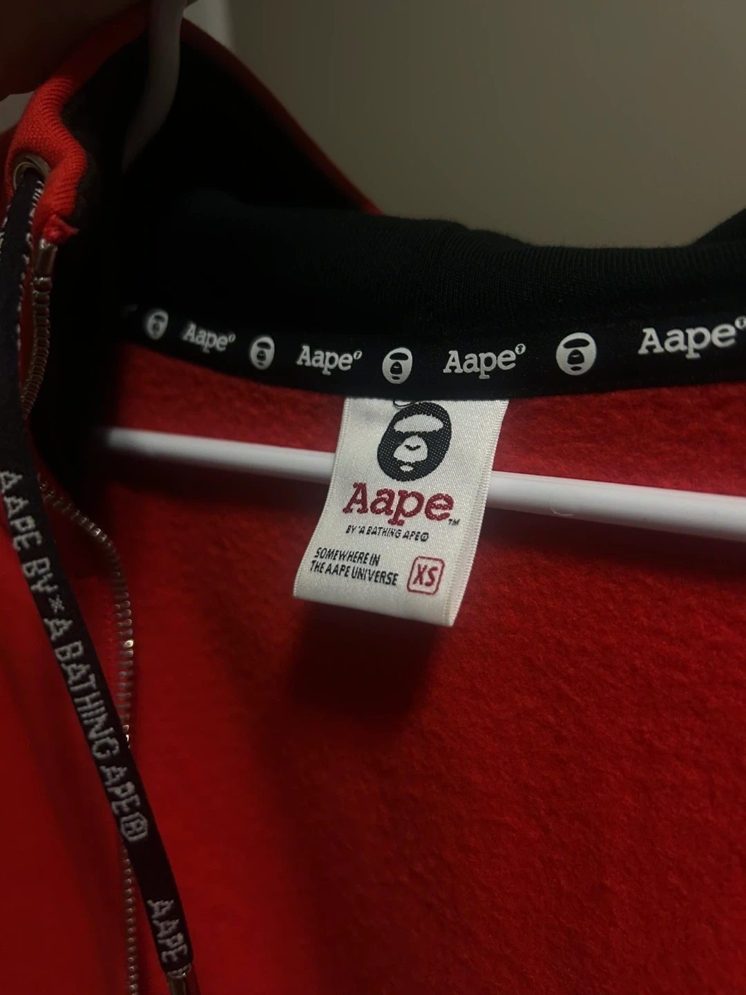 Selling a red Aape by A Bathing Ape full zip hoodie! It's in great condition and is a size XS. Perfect for adding a pop of colour to your wardrobe
