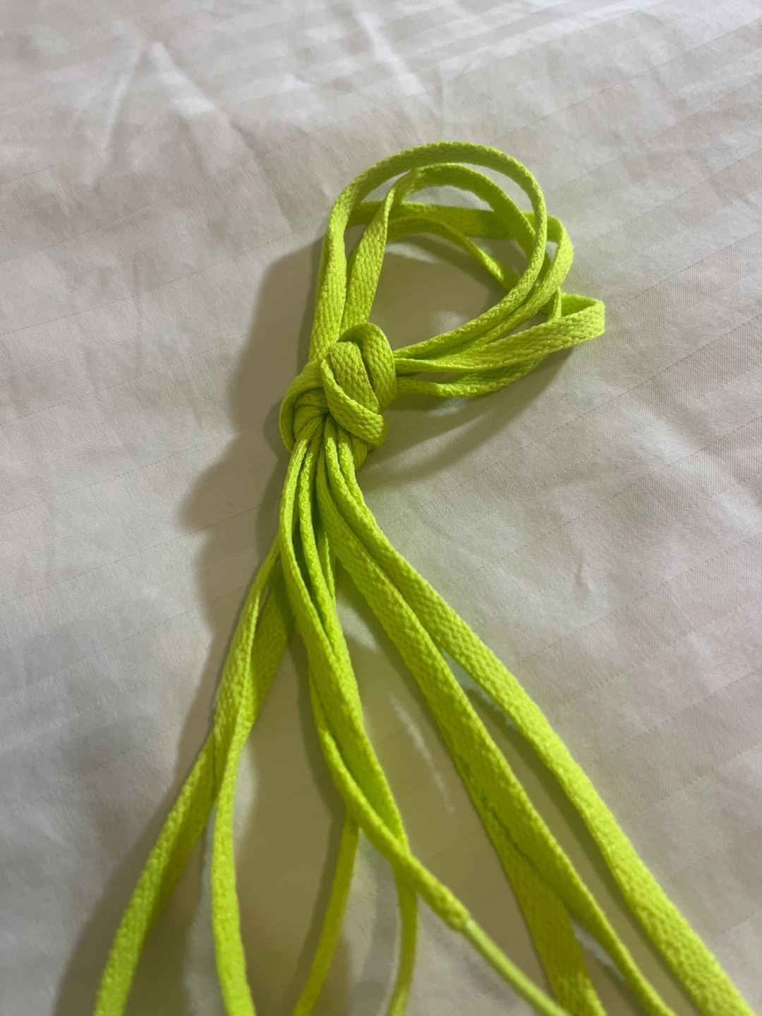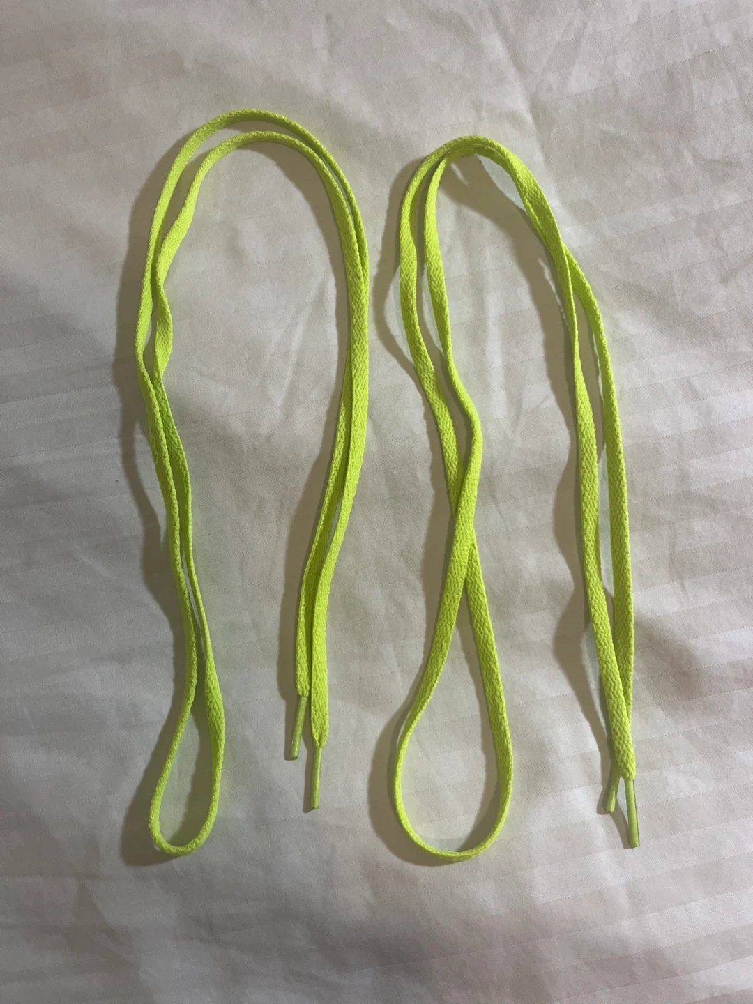 Discarding a pair of neon yellow shoelaces! They're in great condition and ready to add a pop of colour to your shoes, or for any arts & crafts project.