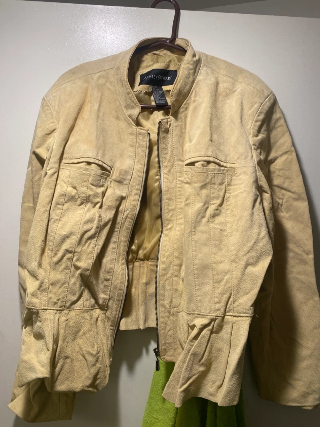 Buy & SellAshley Stewart Suede JacketAshley Stewart Suede Jacket$90Selling a cute Ashley Stewart jacket! It's a light beige suede material with a zipper. Perfect for spring or fall weatherConditionLike newSizeXLBrandAshley Stewart1 chats·0 favorites·6 viewsSELLERShowKingsbridge100 reviewsWHERE TO MEETLehman College