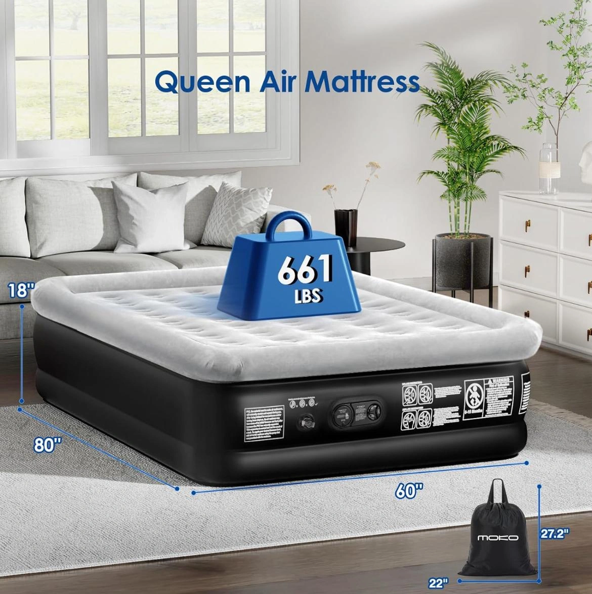 Moko Queen Air Mattress w/ Built-in Pump