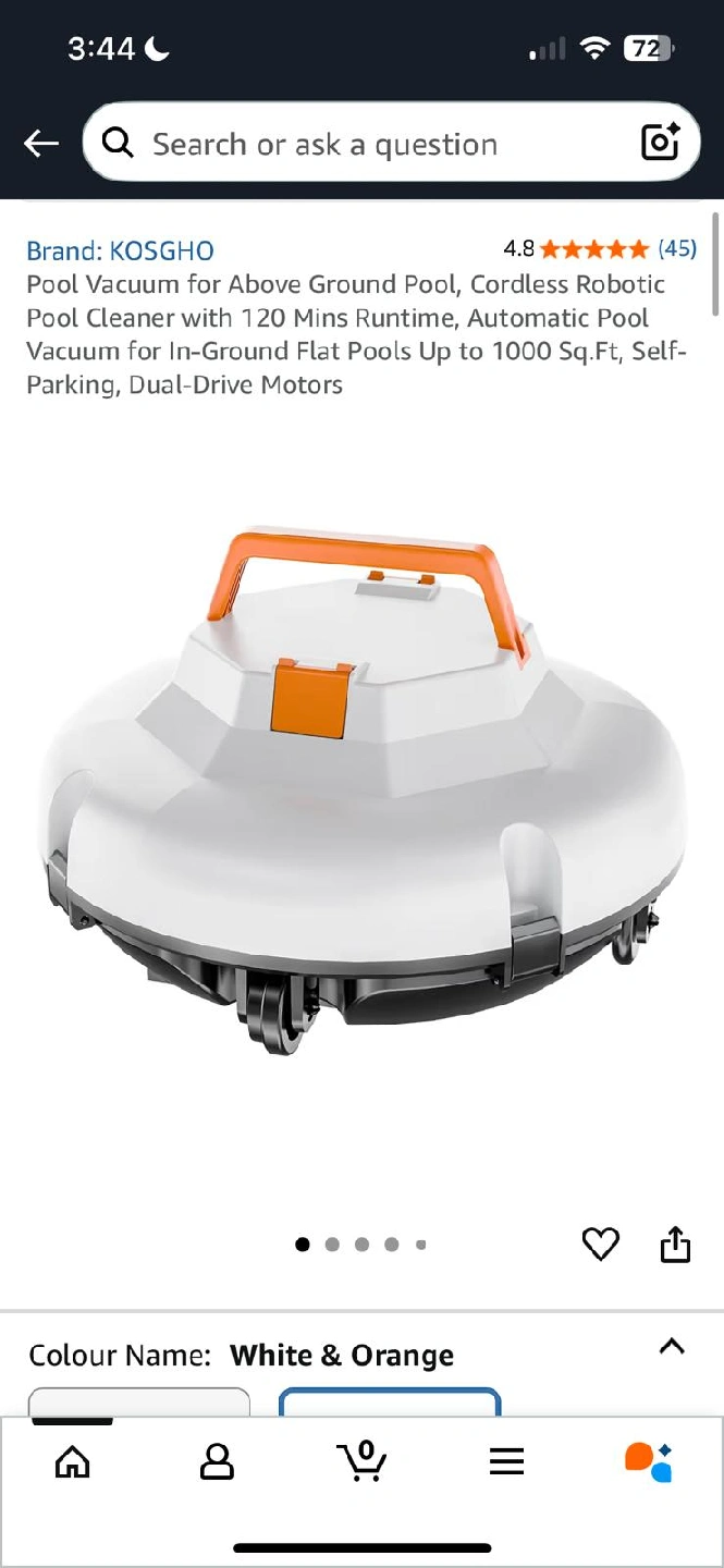 KOSGHO Cordless Robotic Pool Cleaner - White & Orange