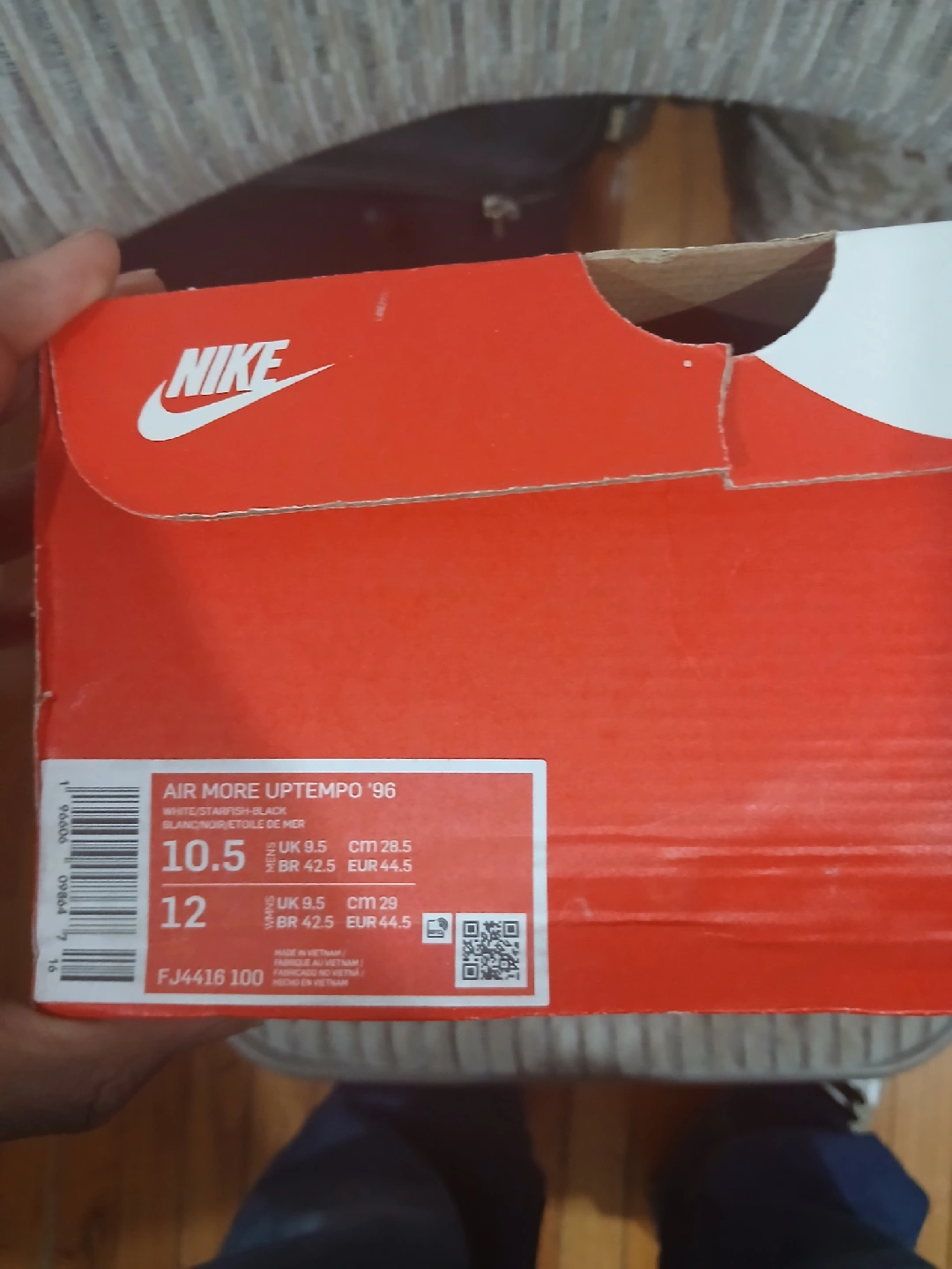Selling A Pair Of Nike Air More Uptempo '96 Sneakers In Size 10.5. The Shoes Are White, Orange And Black. They Come With The Original Box And Are In Good Condition!