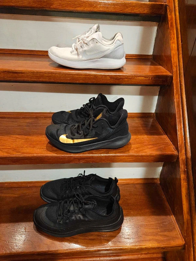 All 3 for $200. The black Nike Air Max on the bottom has barely been worn. All shoes have been cleaned. Gold and black worn the most. Size 11.5, all other shoes size 11.