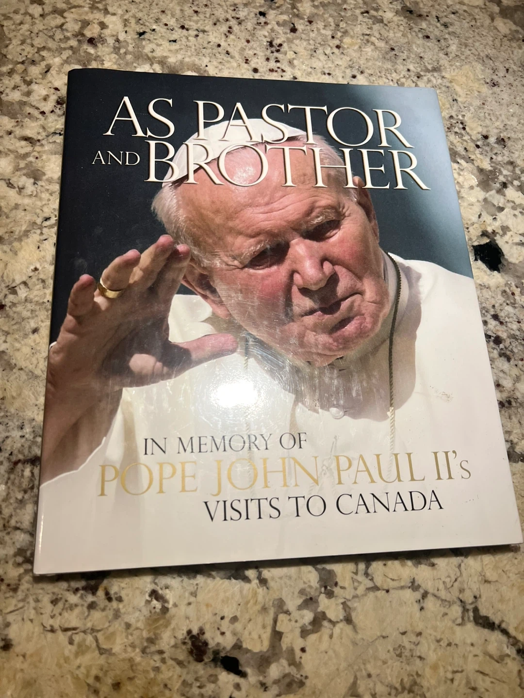 Selling the book "As Pastor and Brother: In Memory of Pope John Paul II's Visits to Canada". It's a lovely book about his visits to Canada. Originally priced at $32.95 Canada