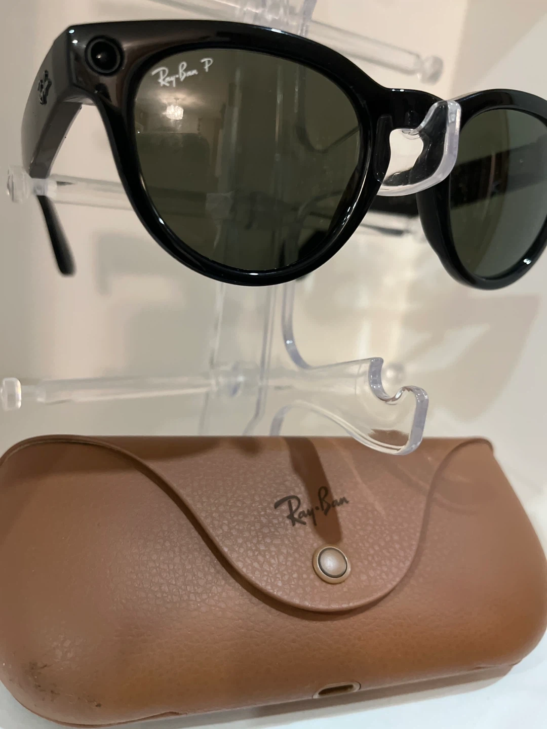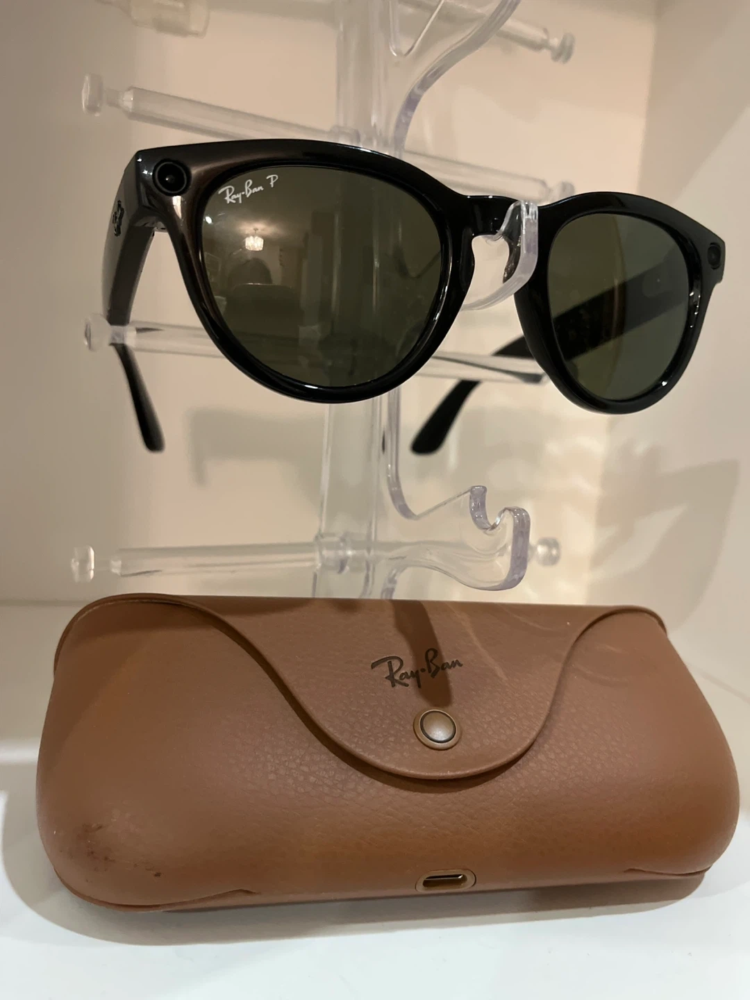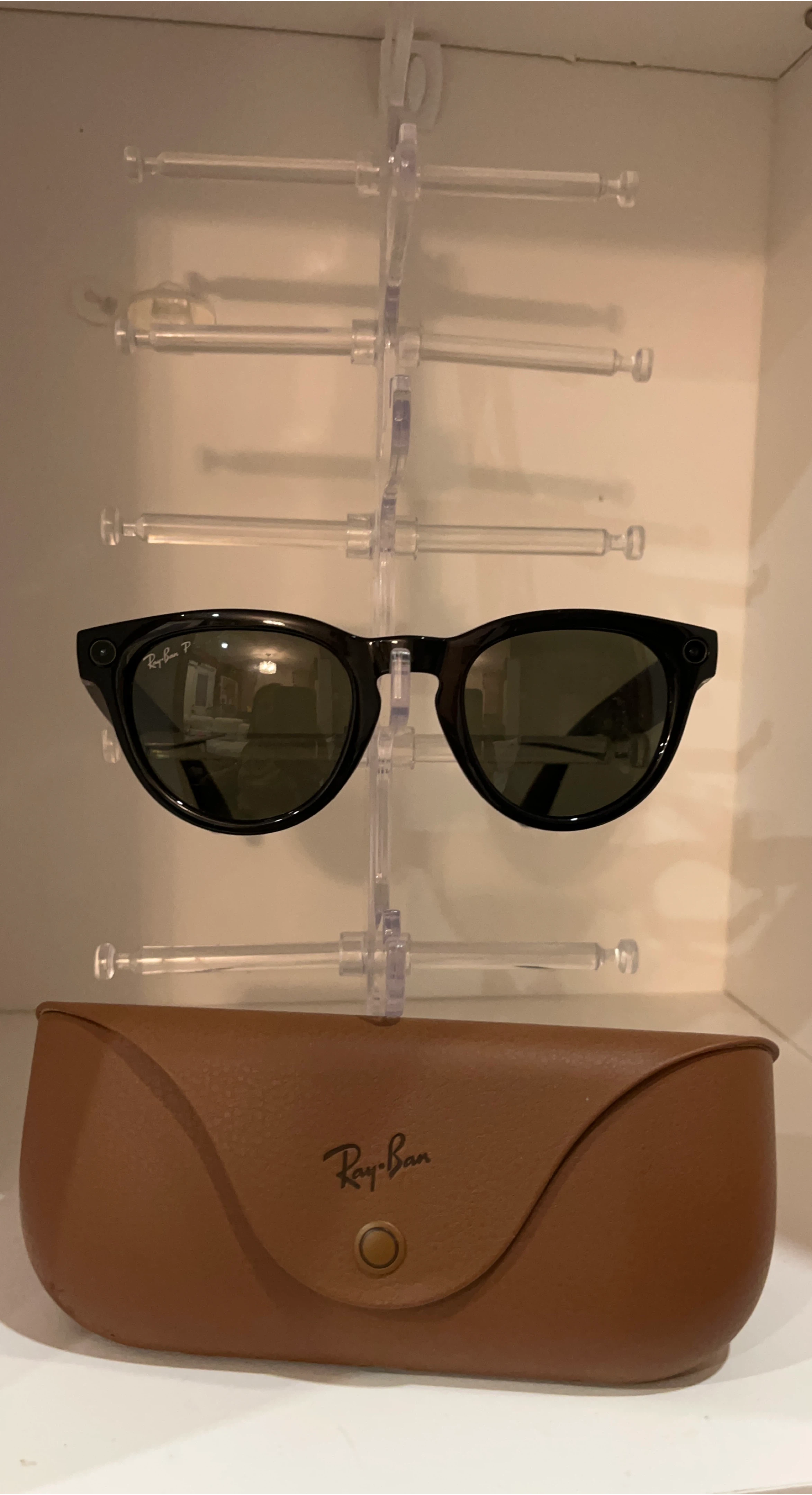 Selling a pair of Ray-Ban Meta smart glasses in black! These are in great condition and come with the original case. They are a stylish way to stay connected and capture moments on the go. Perfect for anyone looking for a blend of fashion and technology