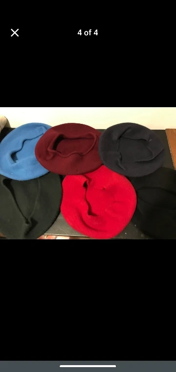 146new wool Berets in dark green, navy, black limited light blue, red and burgundy these are seconds from a supplier $5 each