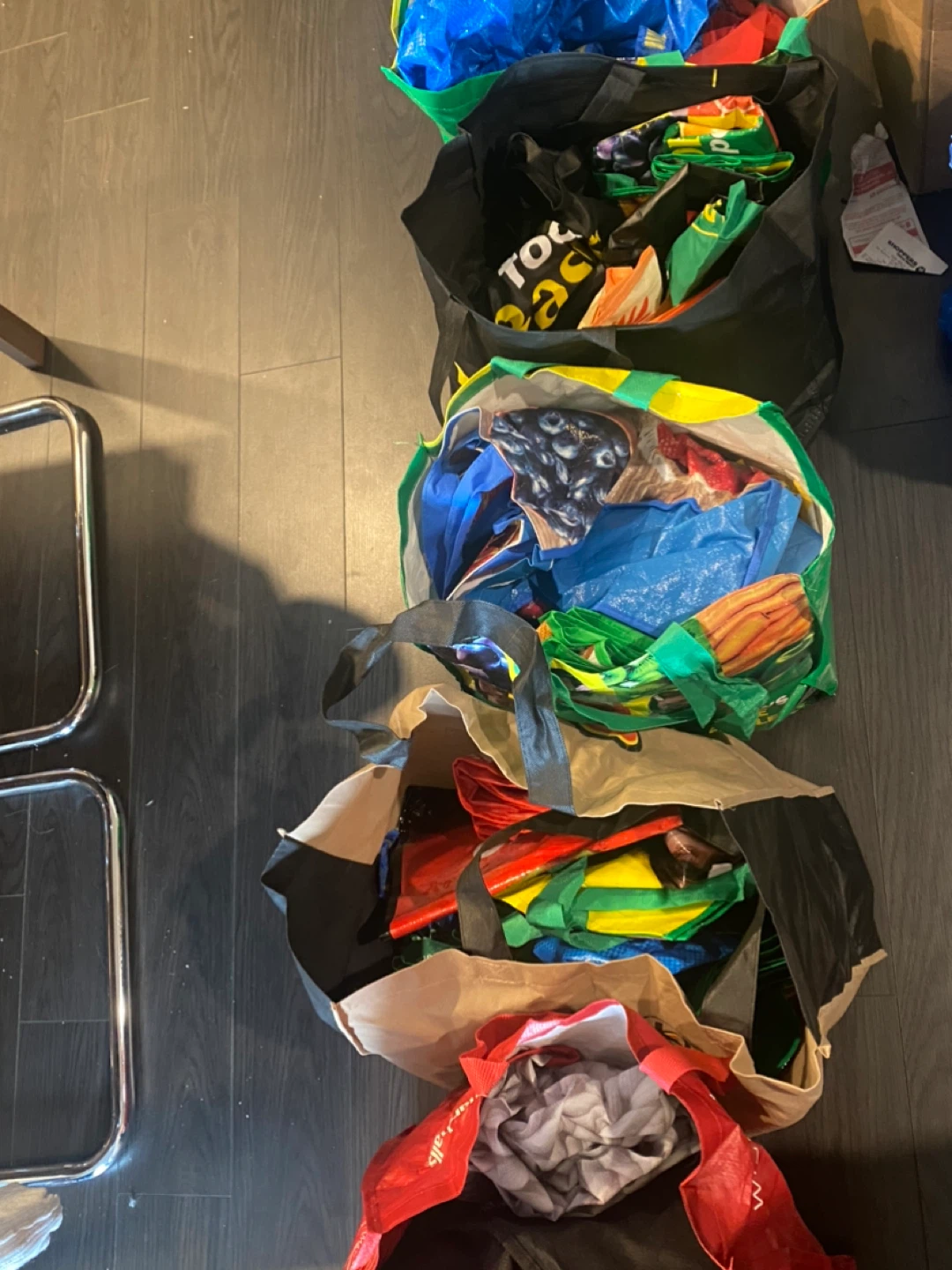 Re usable bages. I have collected them and created five “buckets”. Each bucket has at least 5 bags (pretty sure more). Let me know if you want one bucket, two or even all.