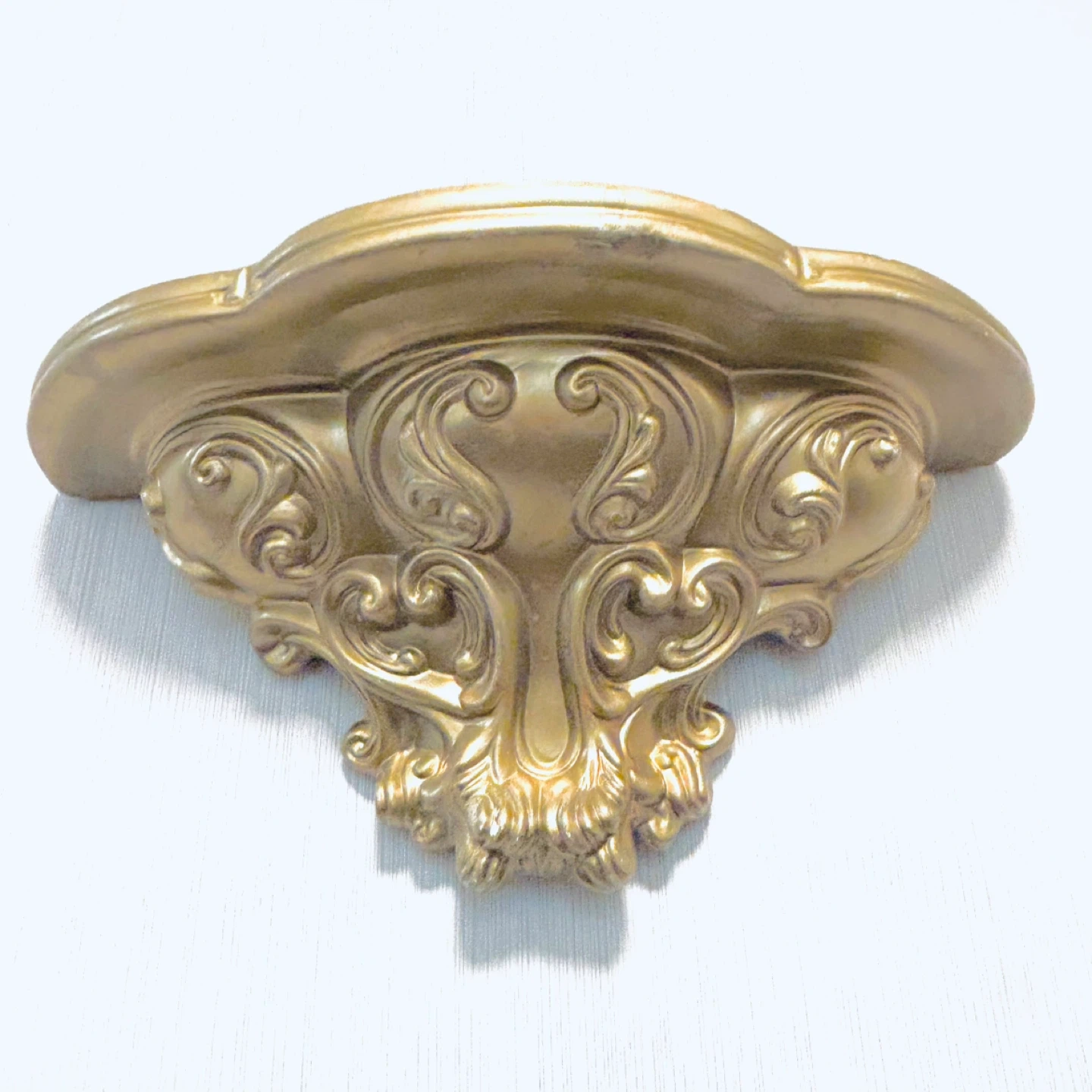Selling a lovely gold decorative wall shelf! It's in great condition and would add a touch of elegance to any room. The ornate design is really eye-catching and unique