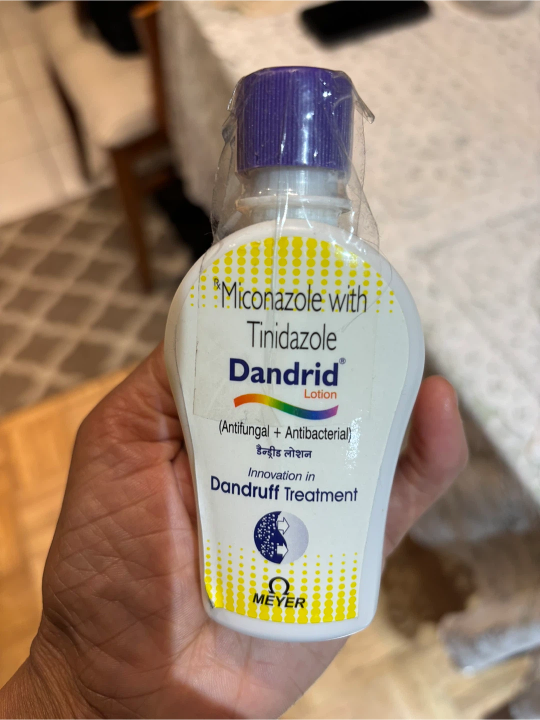 Selling a bottle of Dandrid Lotion. It contains Miconazole and Tinidazole and is used for dandruff treatment. It is both antifungal and antibacterial. Please let me know if you have any questions!