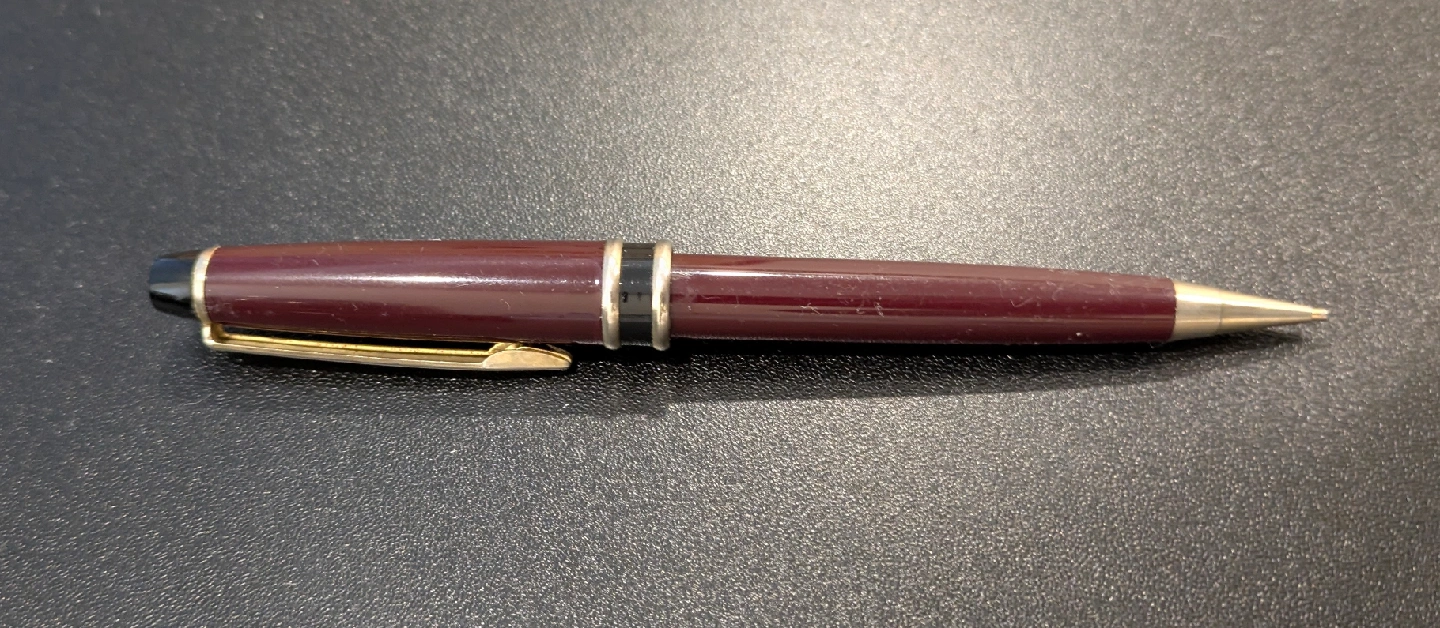 41Burgundy mechanical pencil with gold accents. It is in used condition.