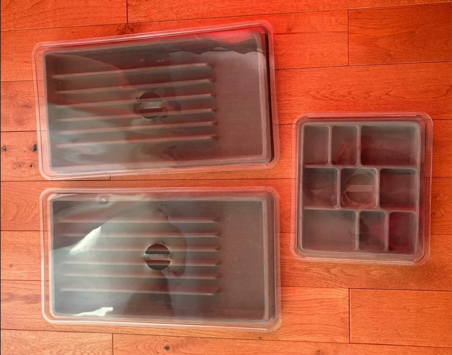 Giving away a set of three plastic/velvety drawer organizers. There are two rectangular organizers and one square organizer. They are in great condition and ready to help you get your drawers in order!