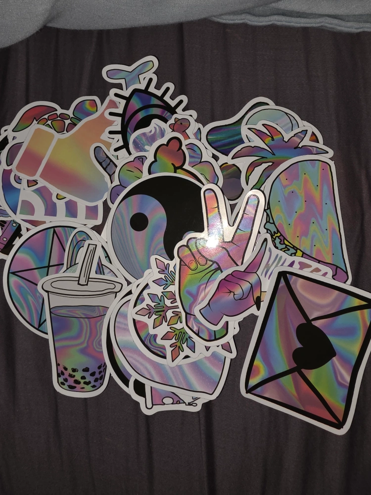 Selling a bunch of fun stickers! They feature different designs like a peace sign, boba tea, an envelope, and more. Add a little sparkle to your laptop, water bottle, or notebook. pickup in my building near High Park Station.