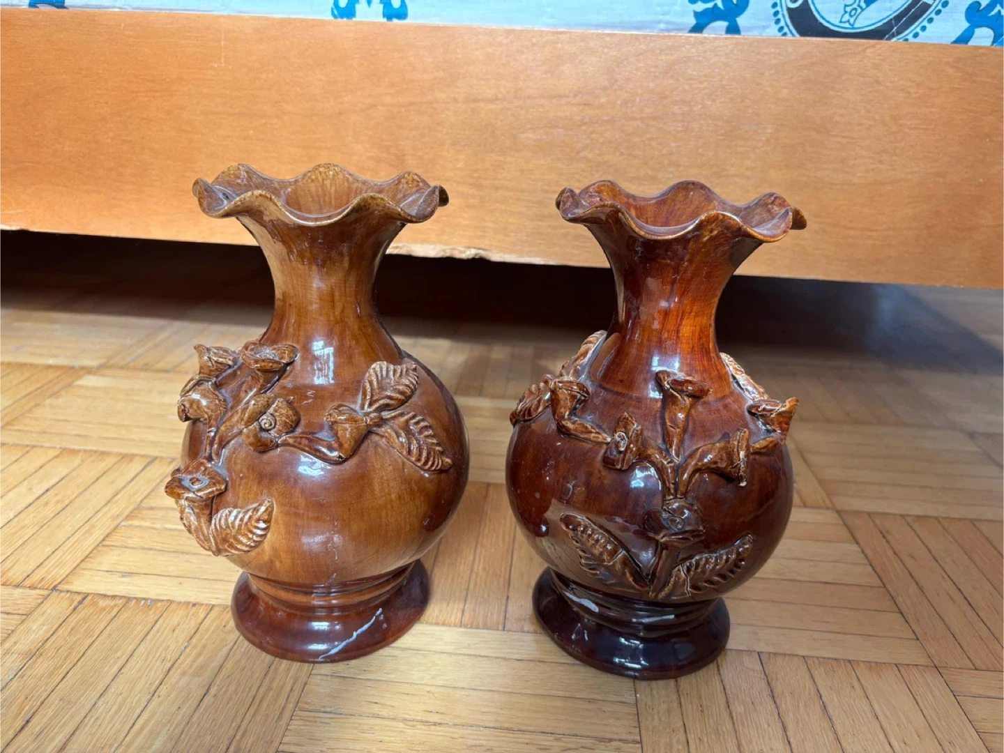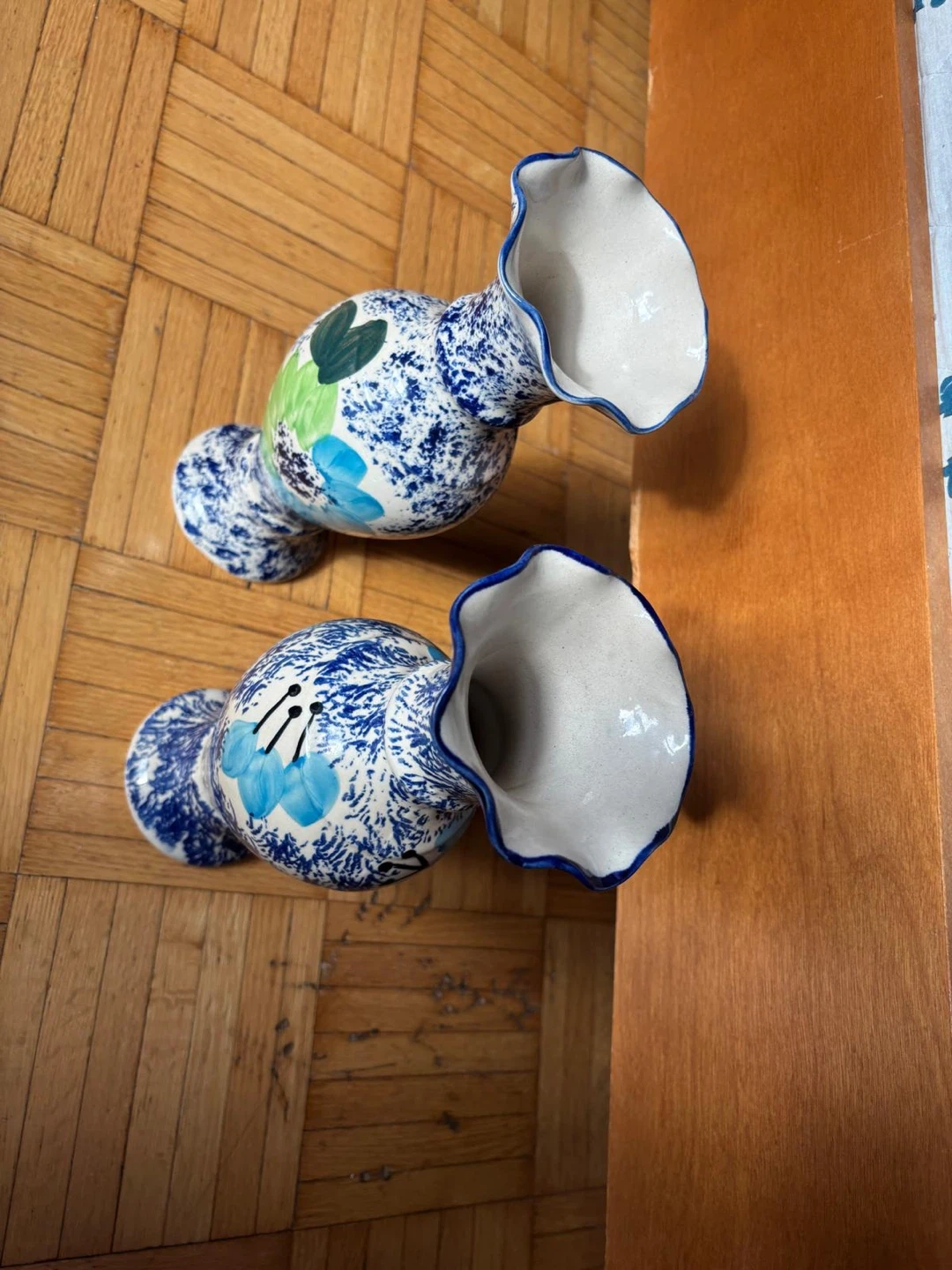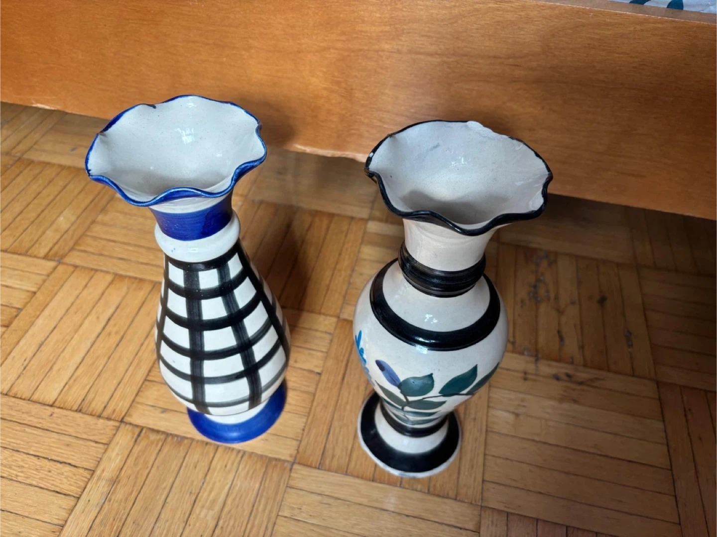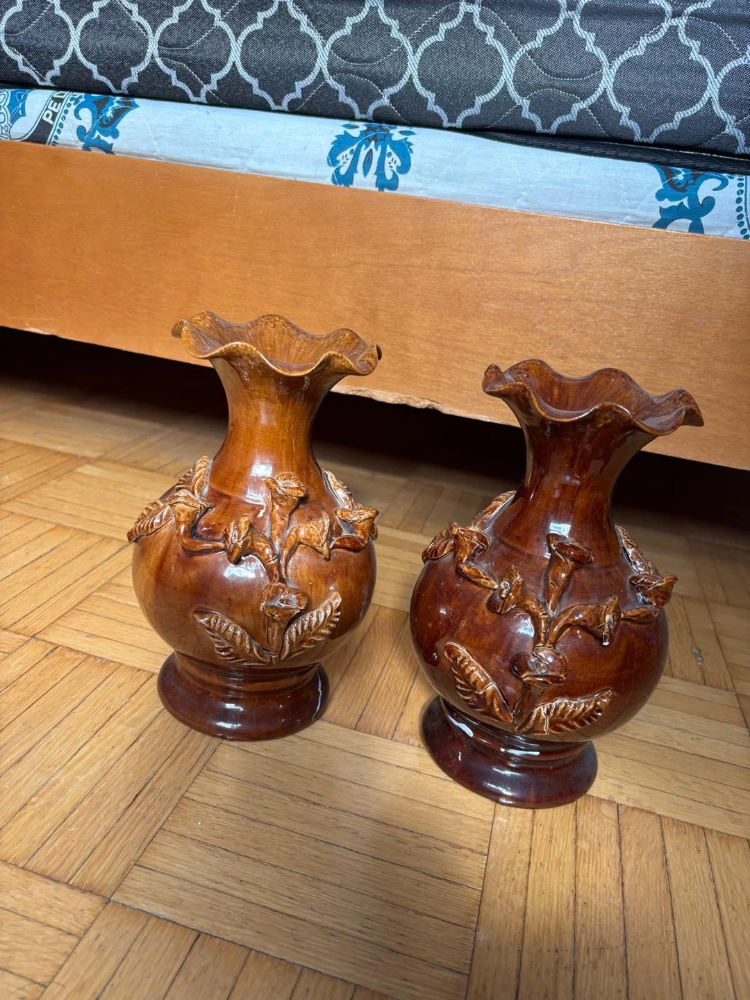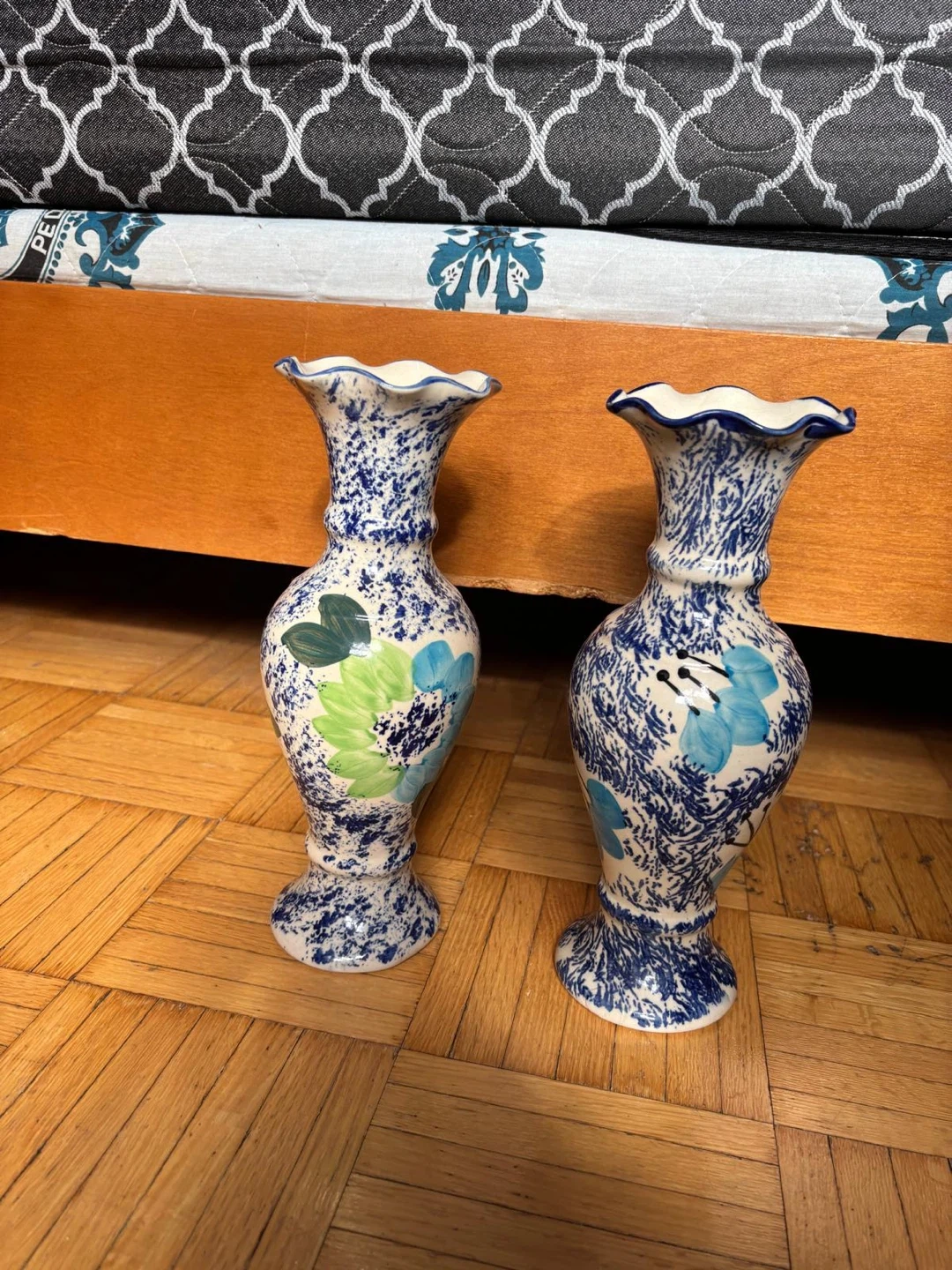 Selling a set of two decorative vases. They are in good condition and would look great in any home. One set is brown and the other is blue and white. They are available as a set. Price is negotiable