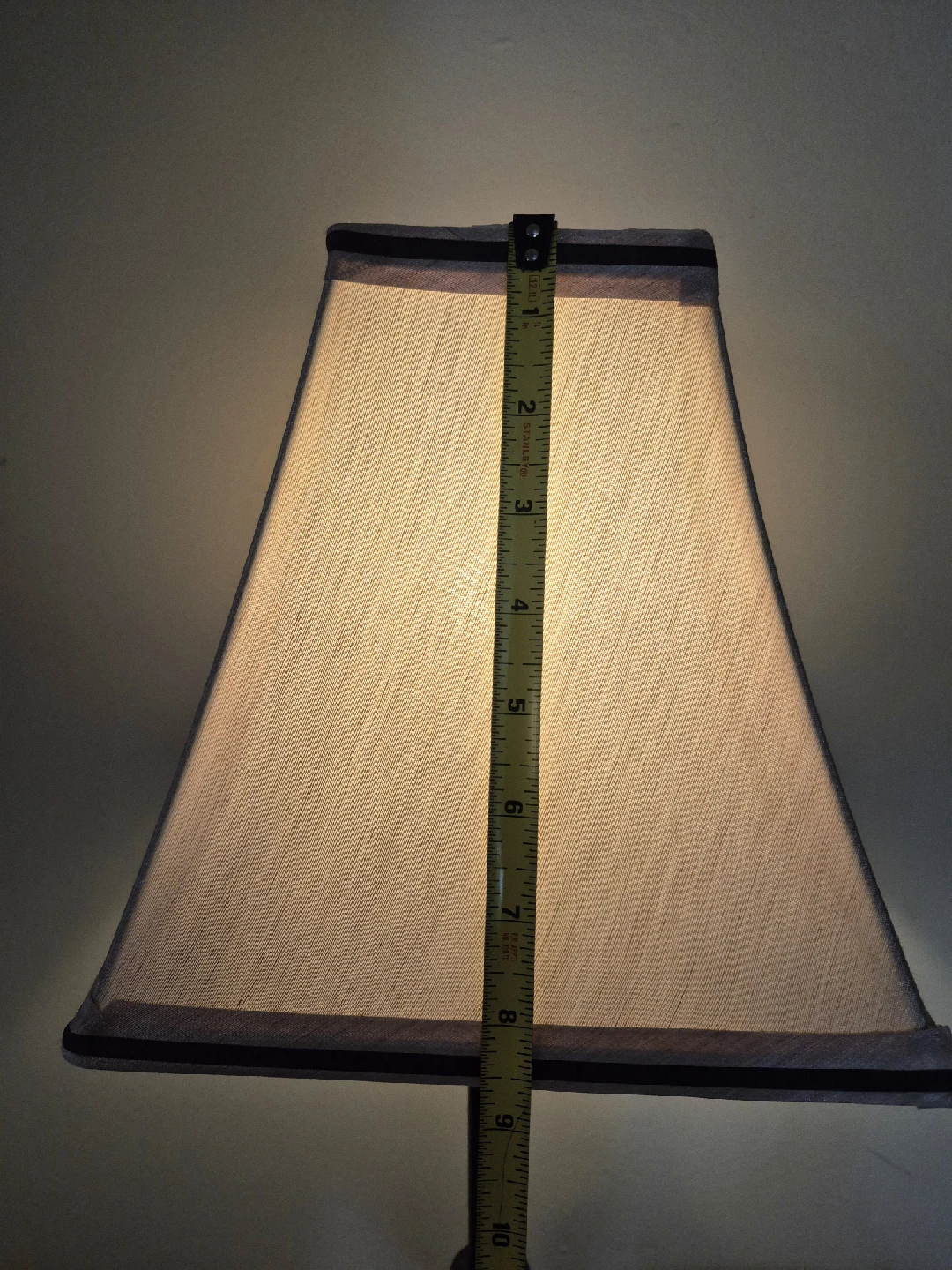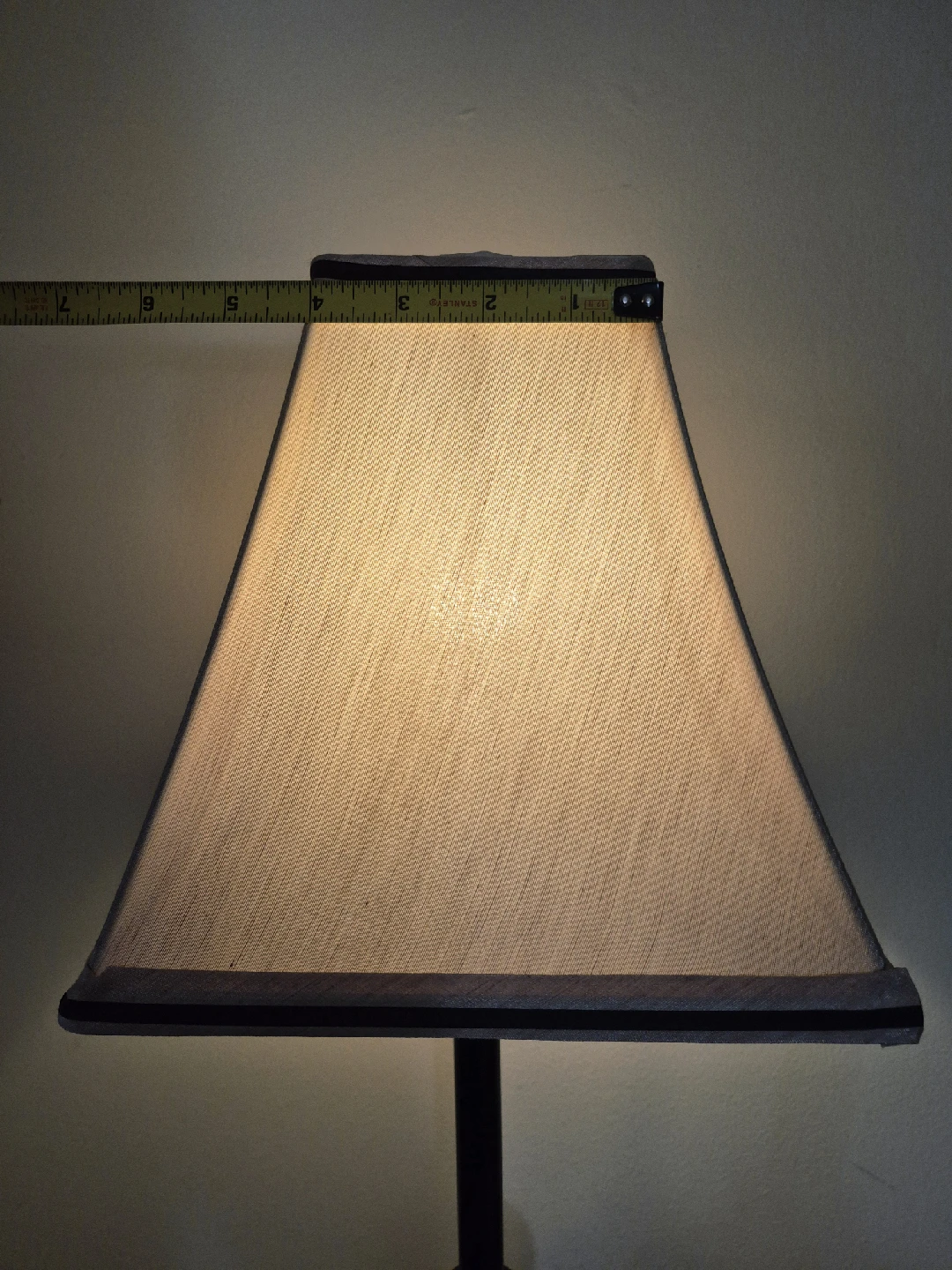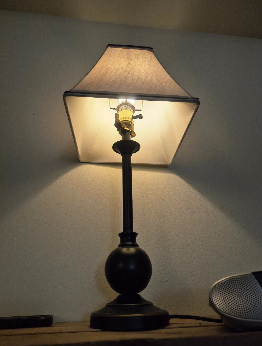 Selling a table lamp with a black base and a beige shade. It stands approximately 20 inches tall.