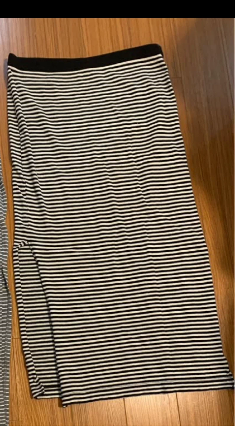 A cute striped skirt, perfect for summer! It's black and white and looks to be in good condition. Size small.