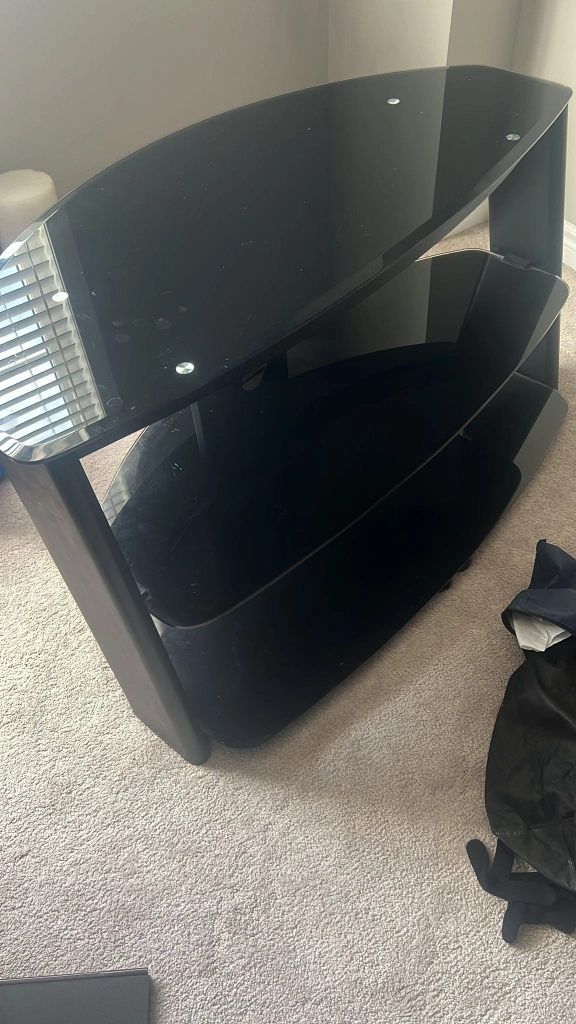 Selling a sleek black glass TV stand. It's in great shape and ready for a new home! Perfect for adding a modern touch to your living room or entertainment area