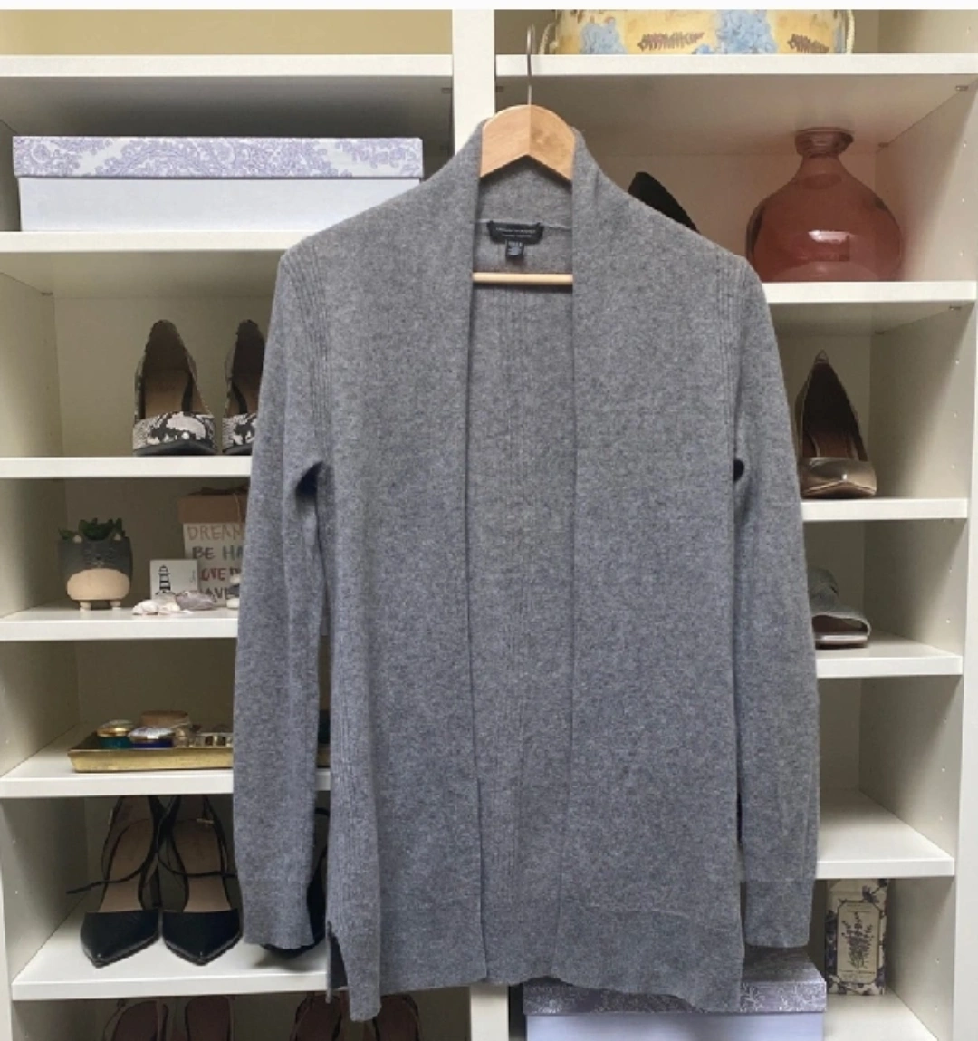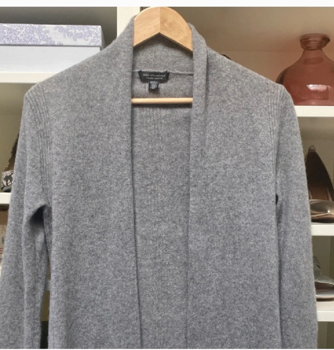 Selling a SAKS FIFTH AVENUE cashmere cardigan in a lovely grey colour. It's a size xs and made of soft cashmere material. Perfect for layering on cooler days!
