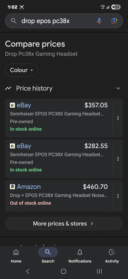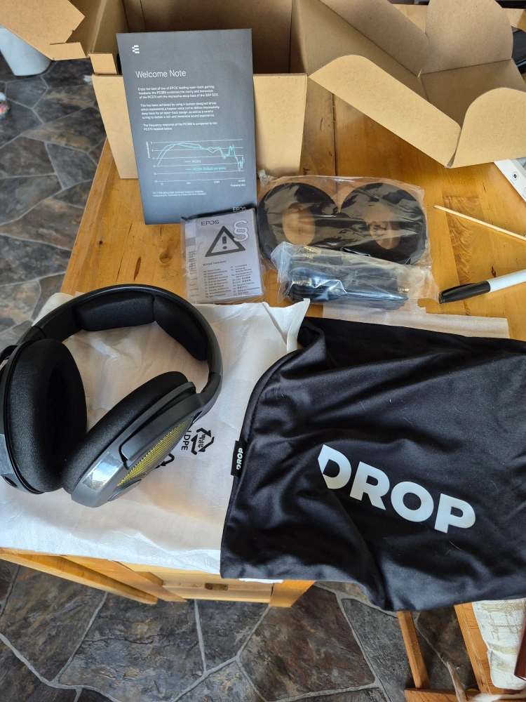 Selling a Drop + EPOS PC38X gaming headset in black. It's New comes with the original box and all included components. The headset features noise-cancelling microphone with over-ear open-back design and velour earpads, compatible with PC, PS4, PS5, Switch, Xbox, Mac, Mobile, and more. Perfect for immersive gaming!