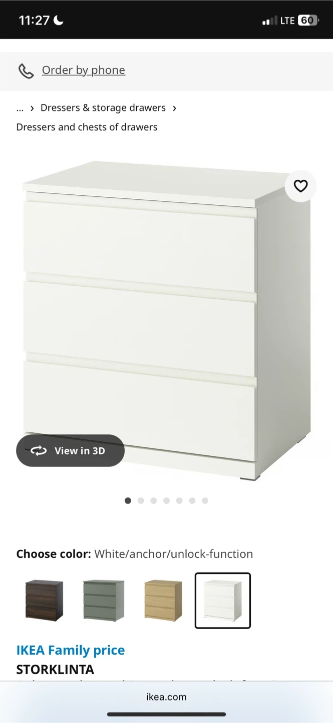 Selling a white IKEA Storklinta 3-drawer chest. The dimensions are 70x48x75 cm (27 1/2x18 7/8x29 1/2 ").