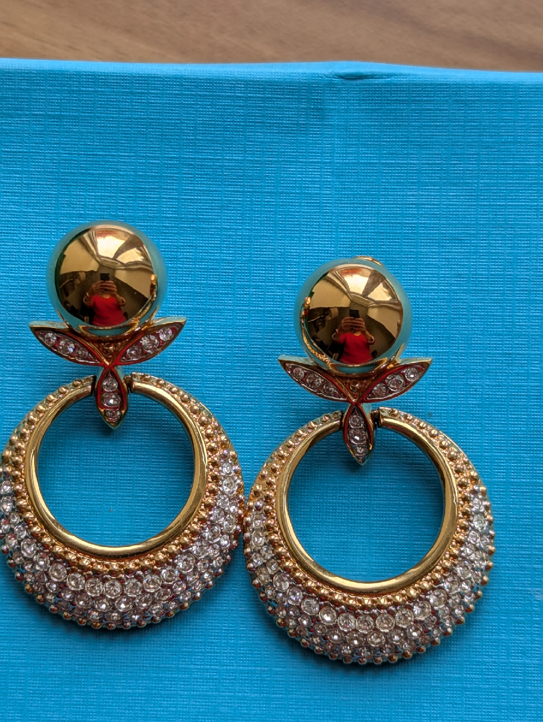 Selling a pair of Nina Ricci gold tone earrings! These are stunning earrings with a beautiful crystal design. They're in great condition and ready to add some sparkle to your look