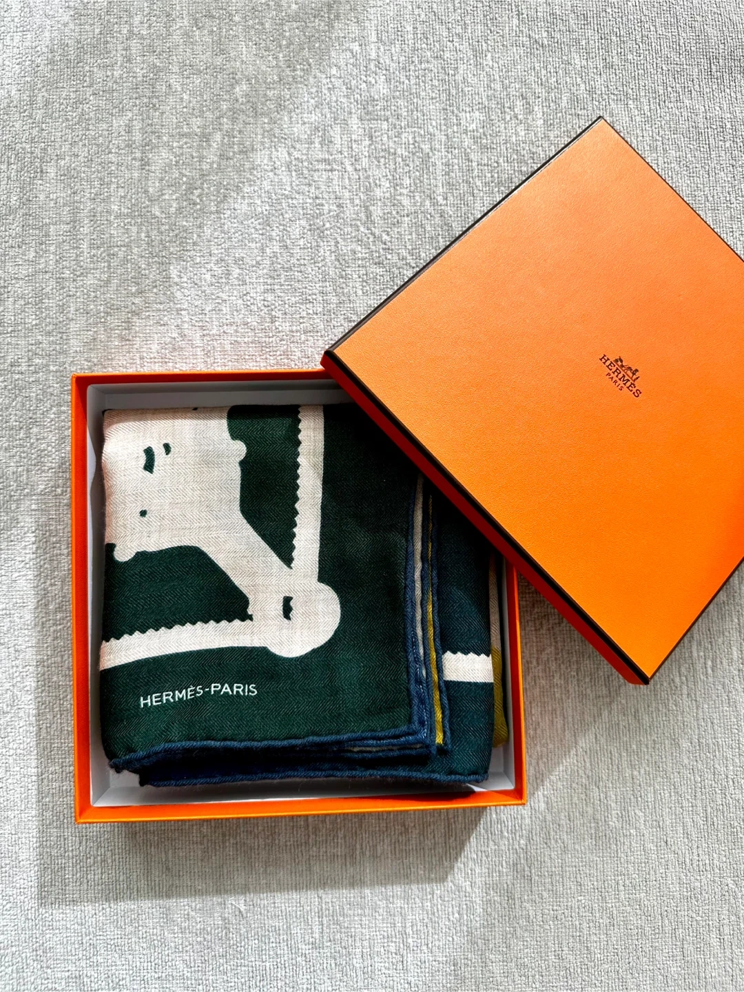 Gorgeous Hermès Paris scarf! 100cm x 100cm. Made from 70% cashmere and 30% silk. The scarf comes with its original box plus bag. Collection of 2023. Never worn.