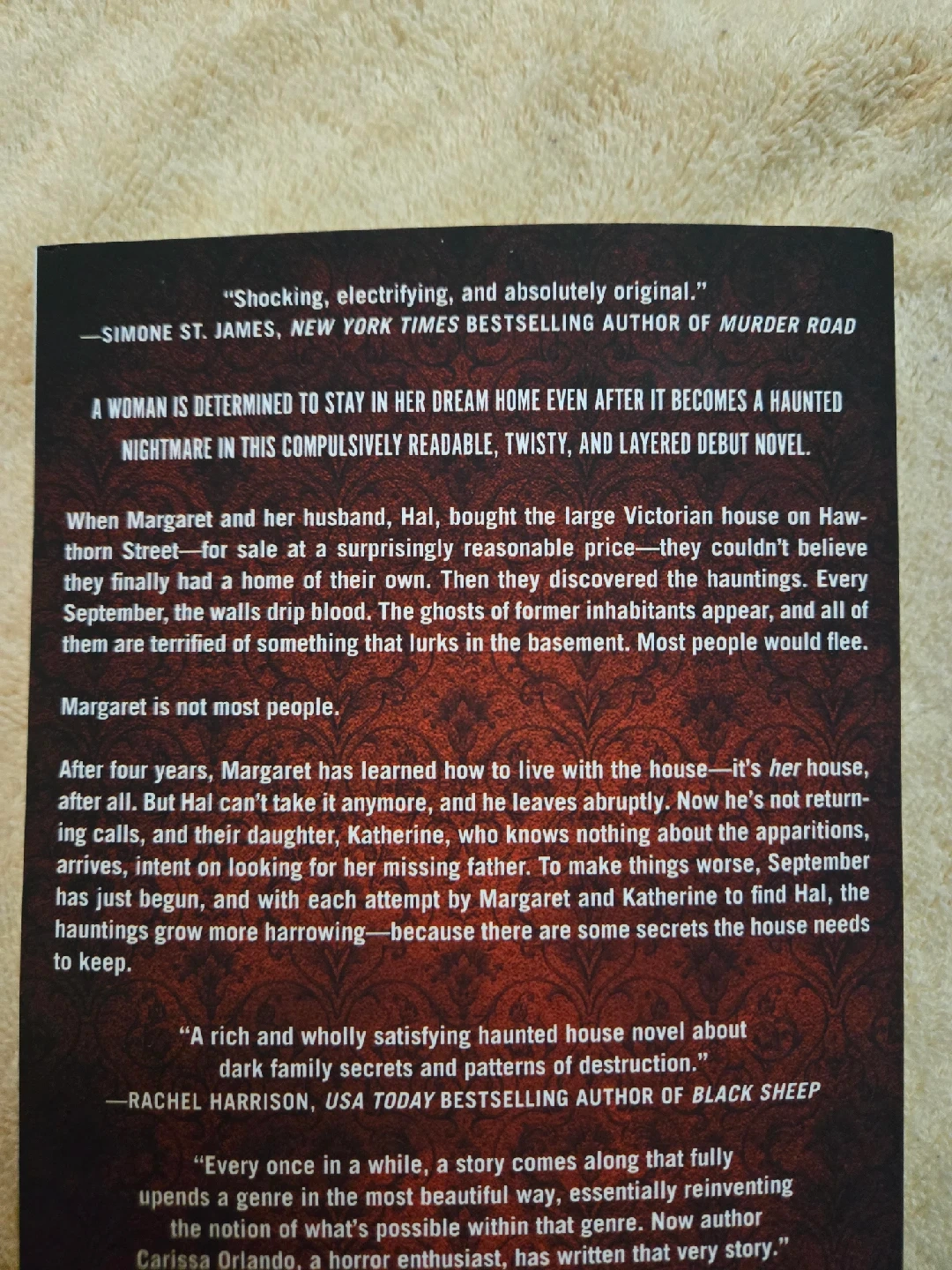 10Selling a copy of "The September House" by Carissa Orlando. It's a novel about a haunted house and dark family secrets. If you enjoy a thrilling read, this book might be for you! Truly a great ghost story.