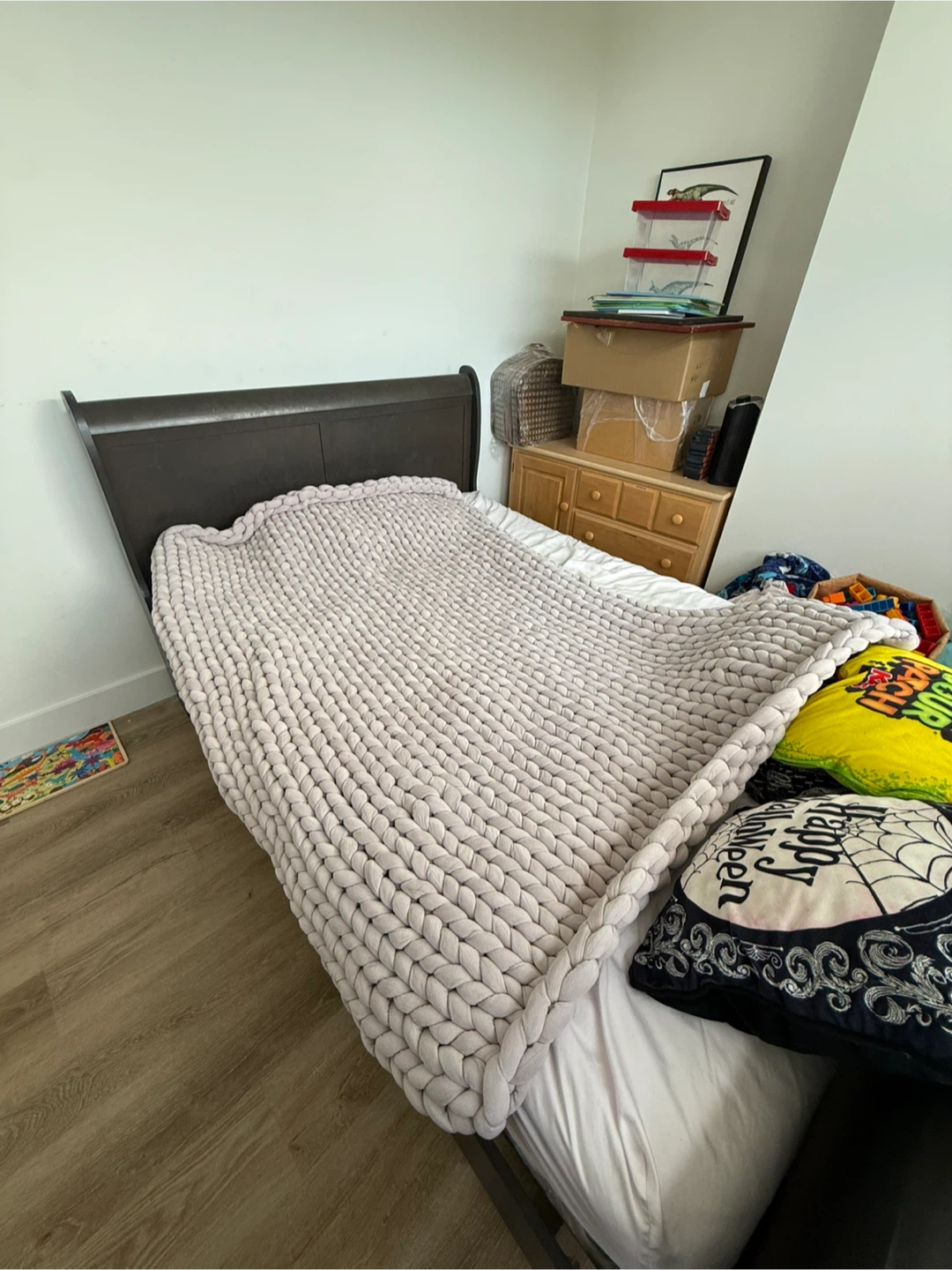 Hush brand 15lbs weighted blanket. Bought for my son but his Nan bought him one he likes better so barely used. Very good quality.
