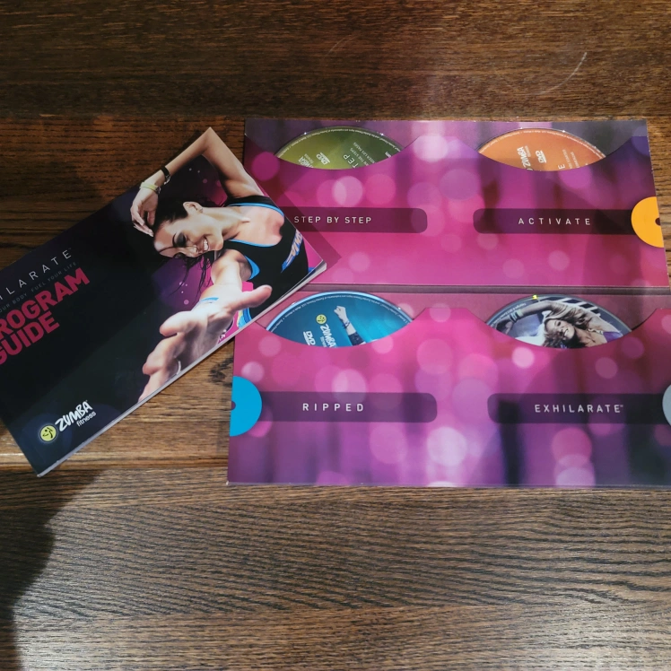 Get ready to dance your way to fitness with the Zumba Fitness Exhilarate Program! This set includes a program guide and four DVDs: Step by Step, Activate, Ripped, and Exhilarate