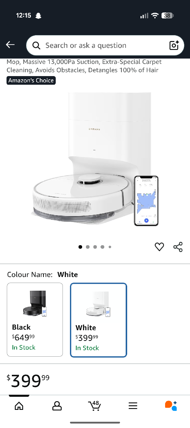 DREAME D15 Plus, Auto Self-Empty Robot Vacuum and Mop, Massive 13,000Pa Suction, Extra-Special Carpet Cleaning, Avoids Obstacles, Detangles 100% of Hair