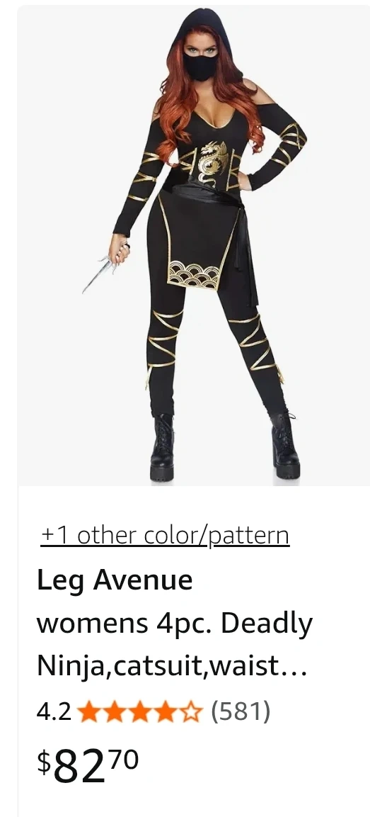 616Selling a Leg Avenue Stealth Ninja costume. This includes the catsuit, waist sash, and face mask. Size is S/P. Originally bought for $82.70