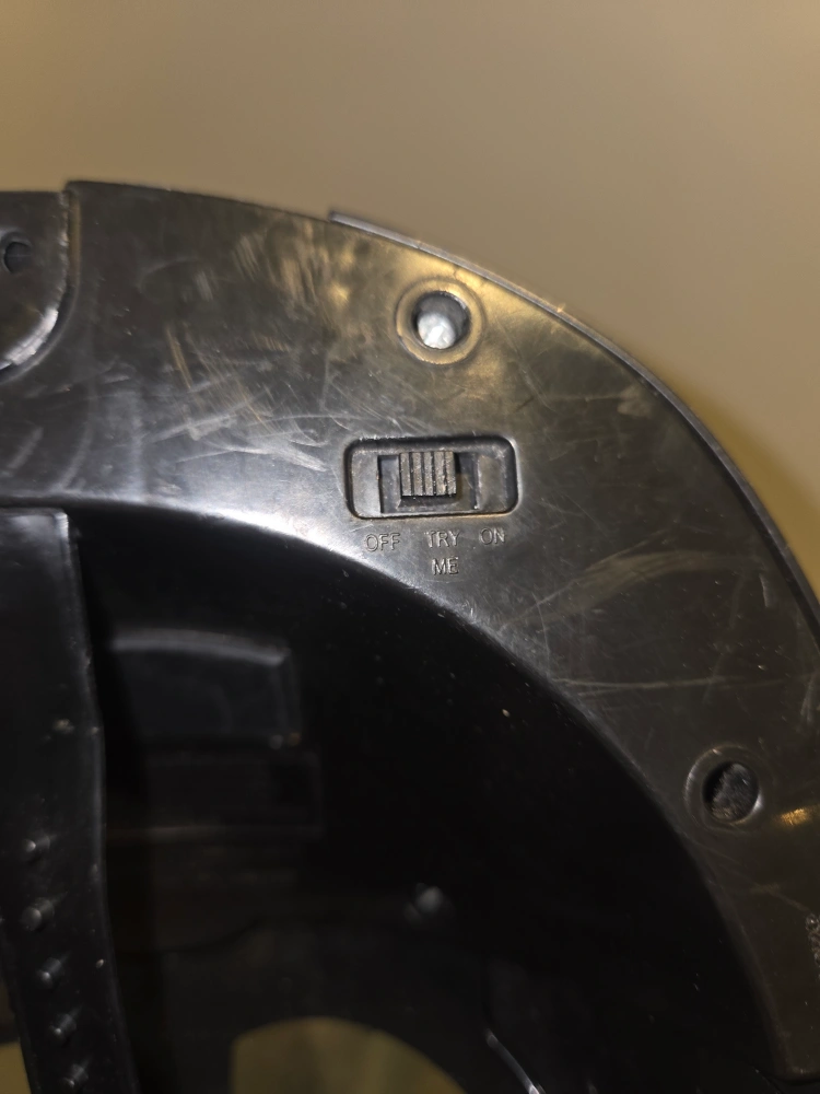 Here's a Darth Vader voice changing mask! It has a switch with OFF, TRY ME, and ON settings. It's in good condition for some Star Wars fun. I do not have batteries for it.