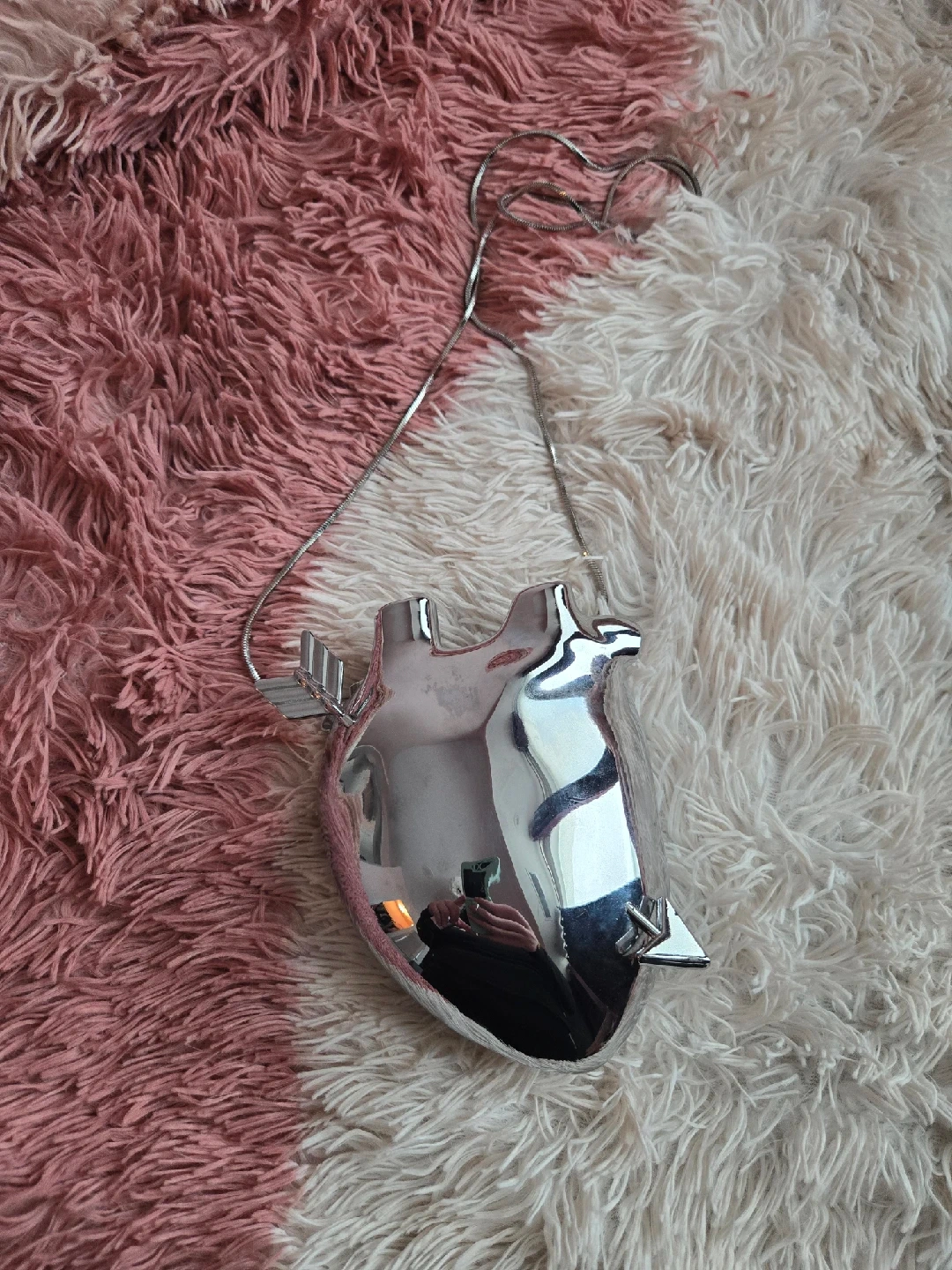 677Unique anatomical heart purse with a silver finish! It's in great condition and ready to add a quirky touch to your style