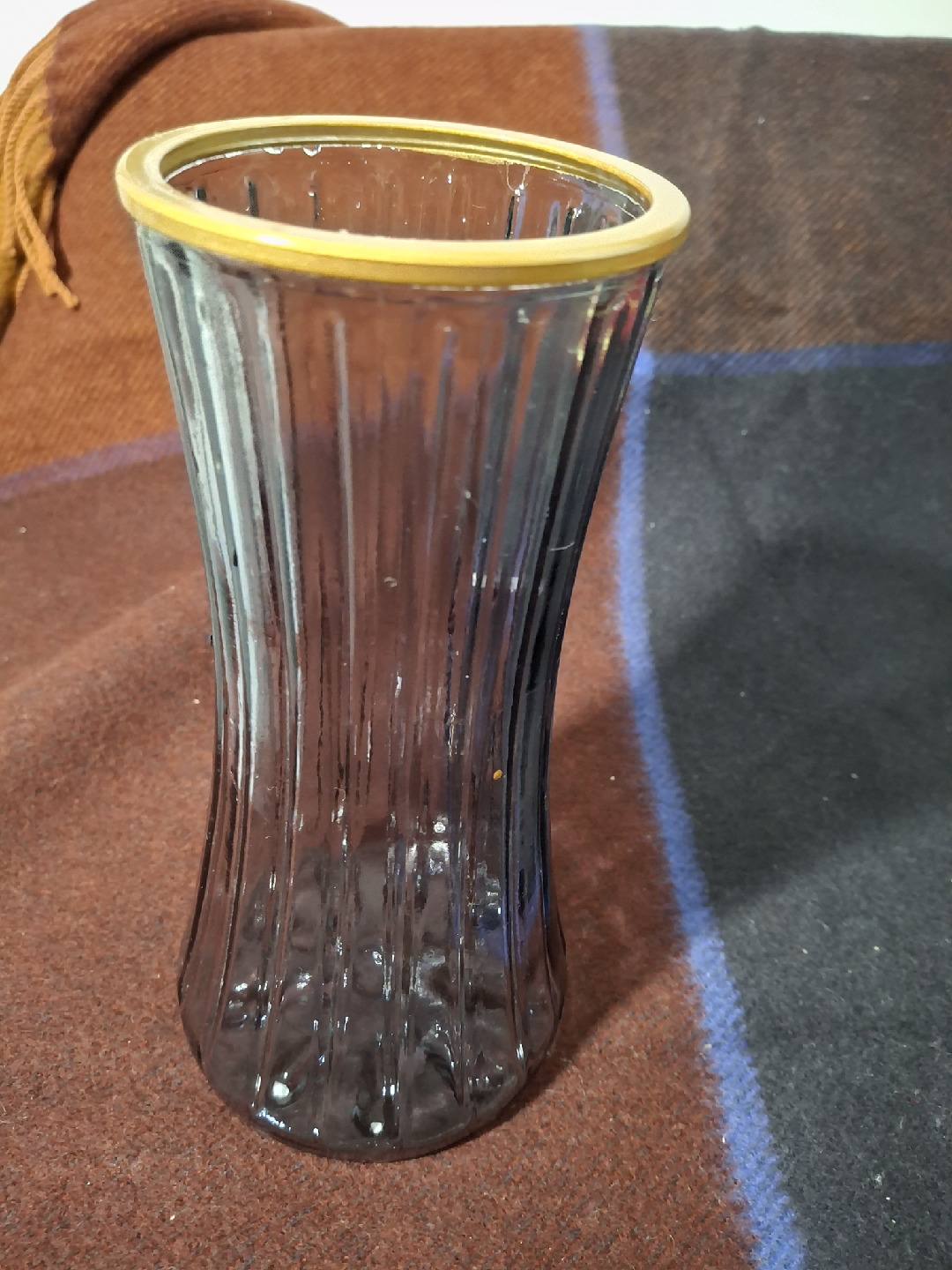 Selling a lovely glass vase, perfect for displaying your favourite flowers! It has a stylish gold rim that adds a touch of elegance