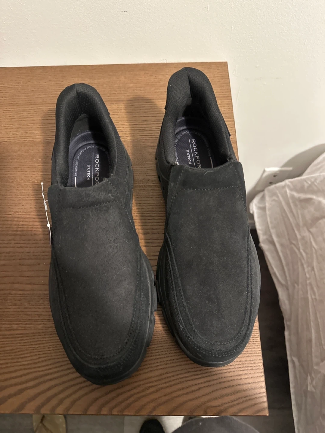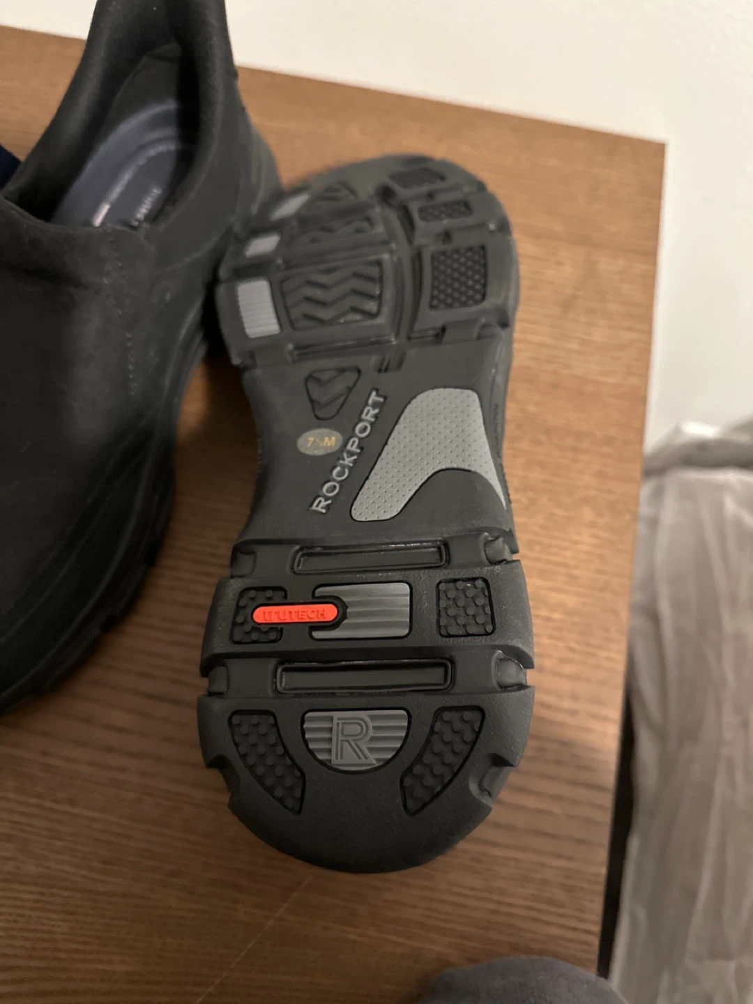 Selling a pair of Rockport TruTECH slip-on shoes in black. They are a size 7M. These shoes feature STEP ACTIVATED technology for hands-free comfort and are powered by one step. Great for everyday wear!