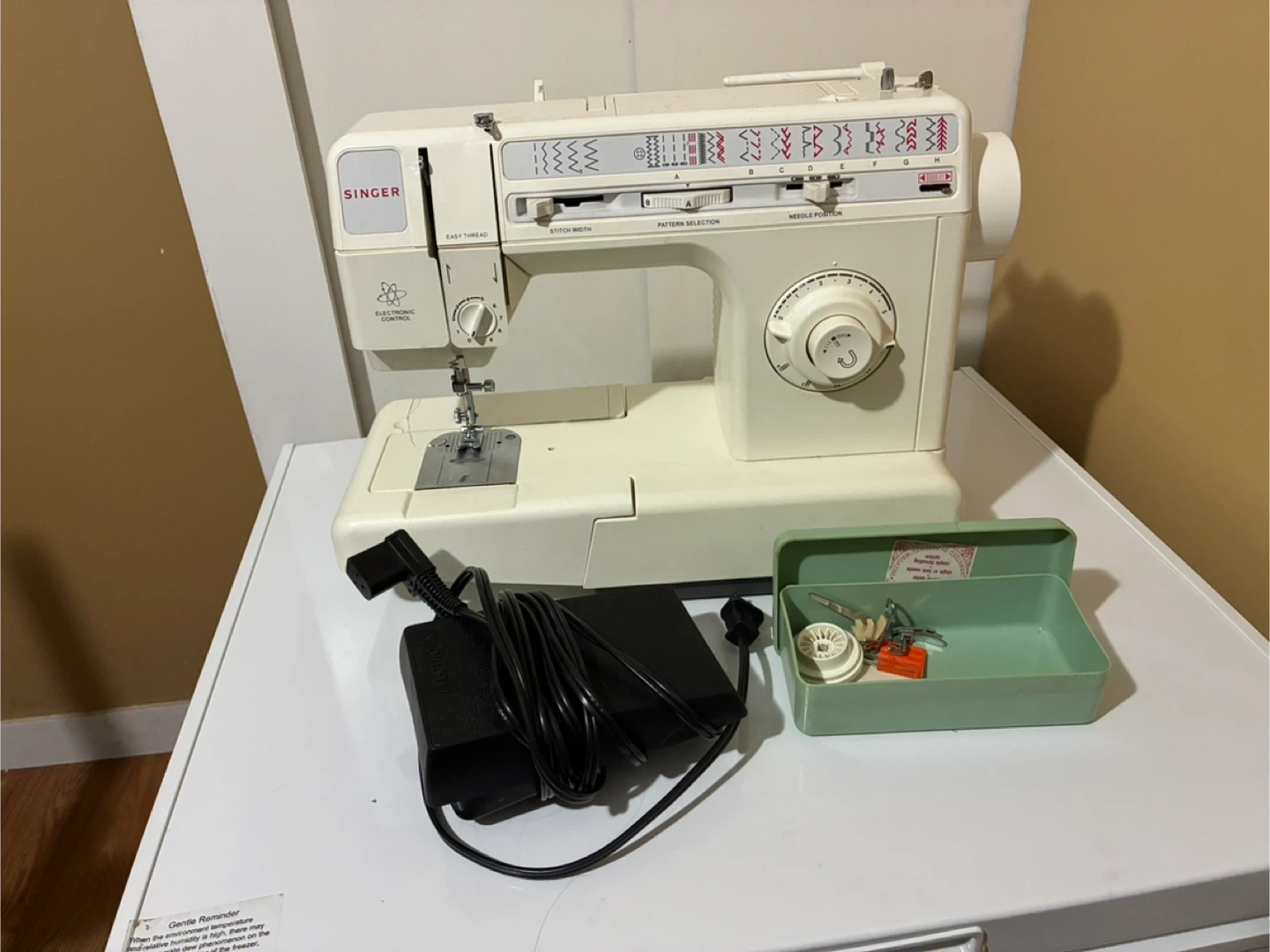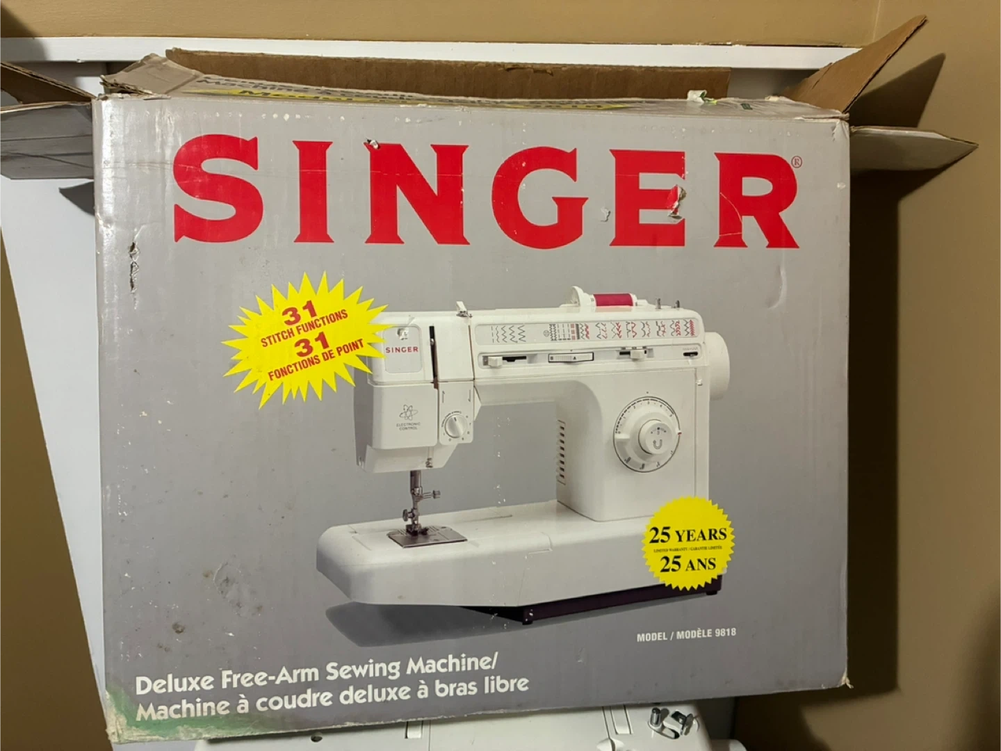 25Selling a Singer Deluxe Free-Arm Sewing Machine, model 9818. It comes with the power cord and some accessories. The original box is included too!